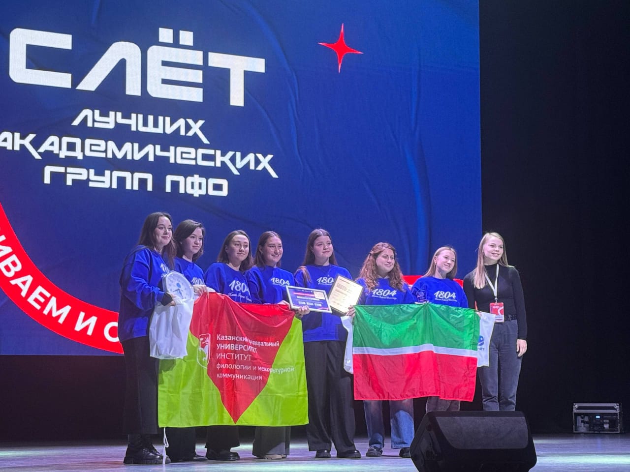 В Ульяновской области завершился Слет лучших академических групп Приволжского федерального округа, который проходил на базе Ульяновского государственного педагогического университета имени И.Н. Ульянова с 6 по 9 ноября. В слёте приняли участие студенты группы 10.2-321 Высшей школы национальной культуры и образования им. Габдуллы Тукая, которые продемонстрировали высокие результаты, заняв почетное 2 место. Кроме того, группа 10.2-321 стала победителем в номинации «Лучшая защита проекта «Академическая инициатива».