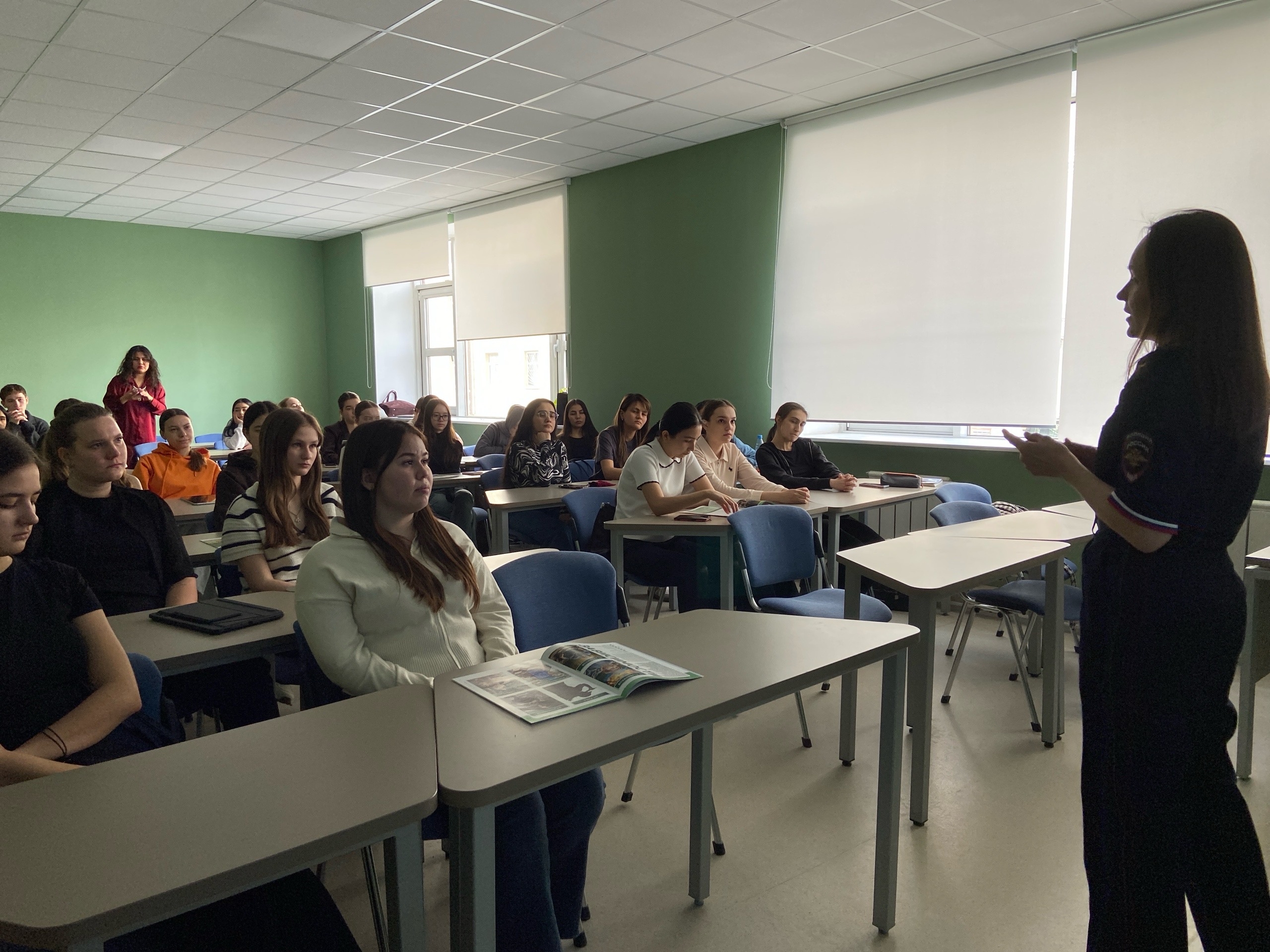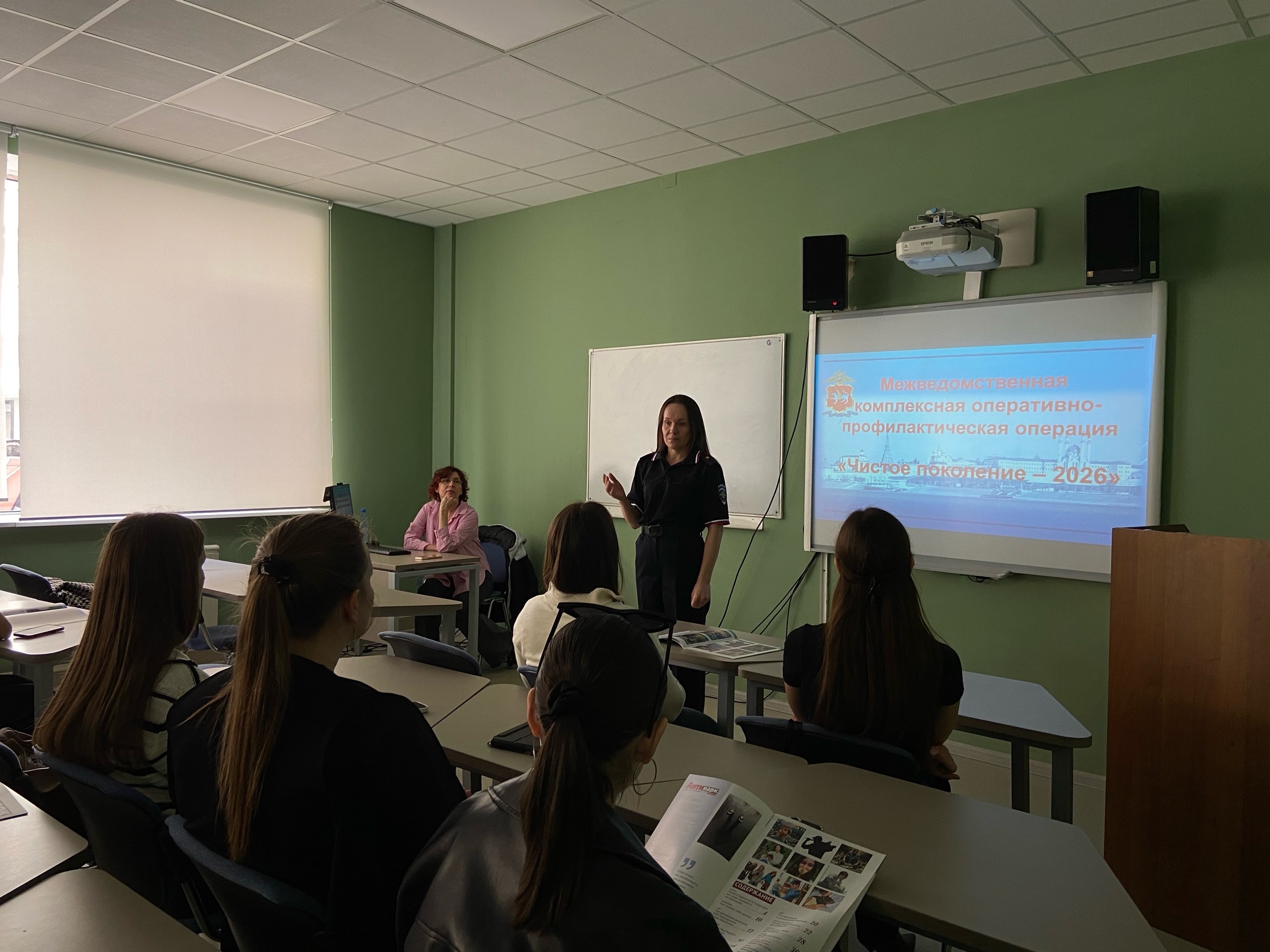 Перед студентами выступила старший оперуполномоченный отдела по контролю за оборотом наркотиков Управления МВД России по г. Казани, майор полиции Вероника Викторовна Ветошкина. В формате живого диалога она донесла до студентов не только сухие цифры статистики, но и правовые реалии.