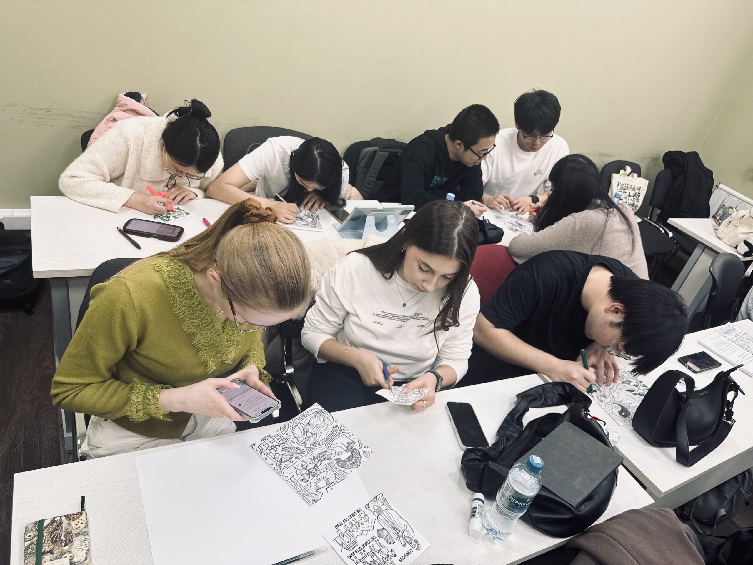 В центре внимания оказались Россия, Китай, Пакистан и Туркменистан. Что для русского «тоска», то для китайца «гуаньси»? Почему чай в разных культурах становится символом гостеприимства, а числа – хранителями удачи или предвестниками тайн? Эти вопросы студенты решали, старательно разукрашивая предложенные им на выбор известные и малоизвестные символы стран, представителями которых они являются.