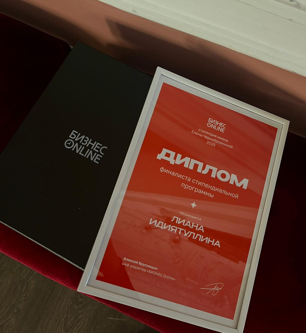 «БИЗНЕС Online» эшлекле электрон газетасы ТР Композиторлар берлегендә Елена Чернобровкина исемендәге стипендия конкурсында җиңүчеләрне бүләкләде. Финалистлар арасында Филология һәм мәдәниятара багланышлар институтының “Филология: татар теле һәм әдәбияты, журналистика” юнәлешенең 3 курсында белем алучы Лиана Идиятуллина да бар иде.