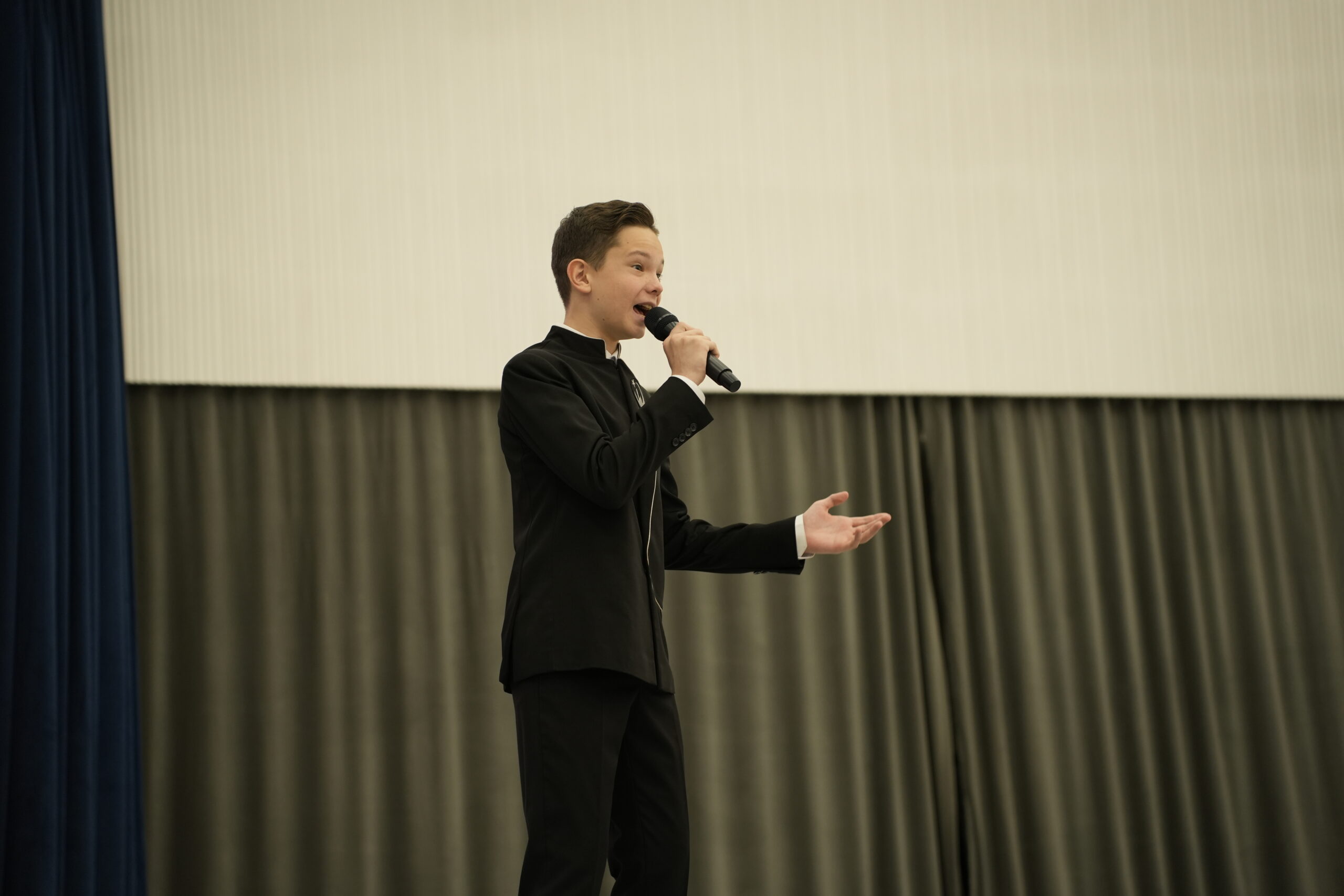 Завершилось торжество исполнением гимна молодого учителя Рустамом Хусаеновым, стипендиантом Раиса РТ, Мэра г. Казани фонда Дениса Мацуева «Новые имена».