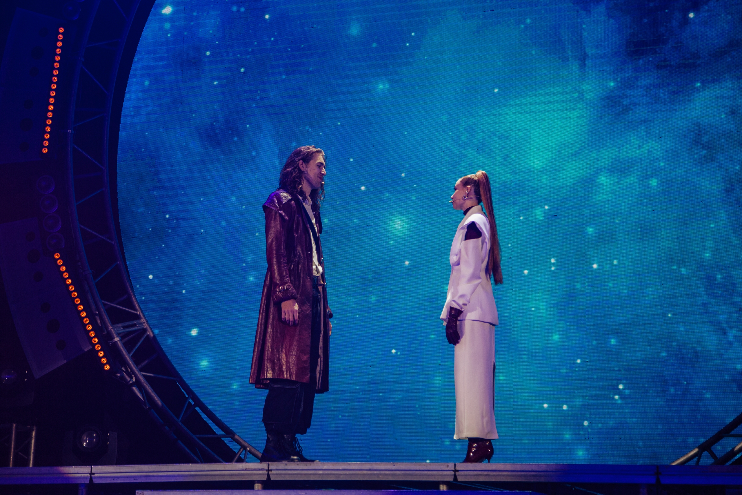 Первое отделение концерта было сюжетным. Герой искал своего спутника по всей вселенной, но в финале оказалось, что его настоящая любовь была рядом все это время. Вторая часть концерта состояла из лучших номеров фестиваля.