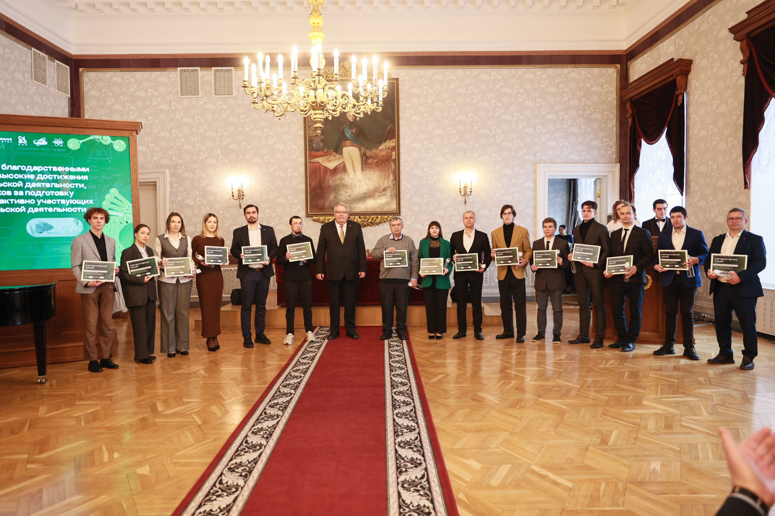 В Императорском зале Казанского федерального университета прошла торжественная церемония награждения студентов, аспирантов и их наставников за высокие достижения в научно-исследовательской деятельности.