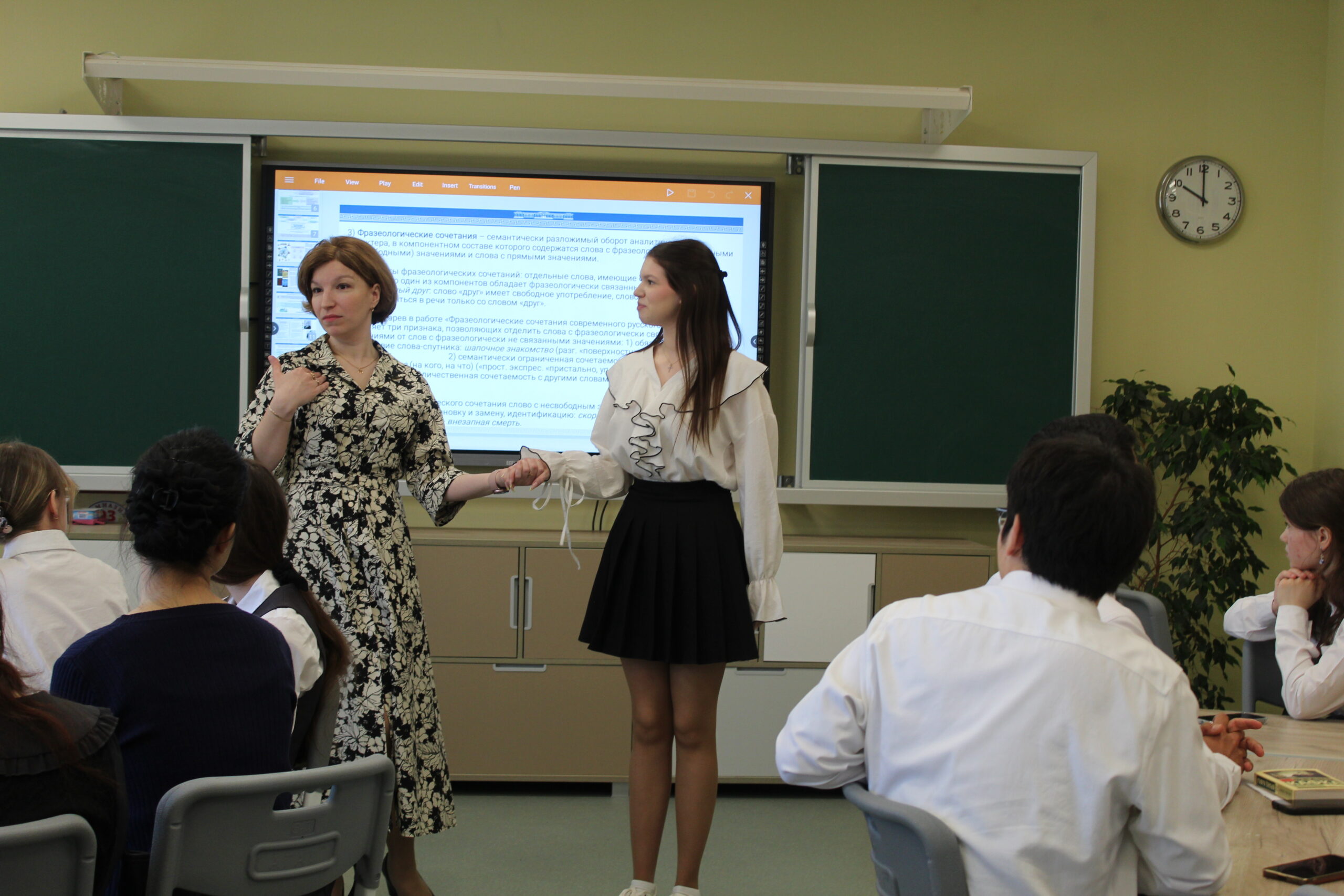Школьники и иностранные студенты с увлечением выполняли интерактивные задания, которые не только вызвали живой отклик у аудитории, но и, безусловно, помогли сформировать точное представление о фразеологизмах и их роли в языковой картине мира русского народа.
