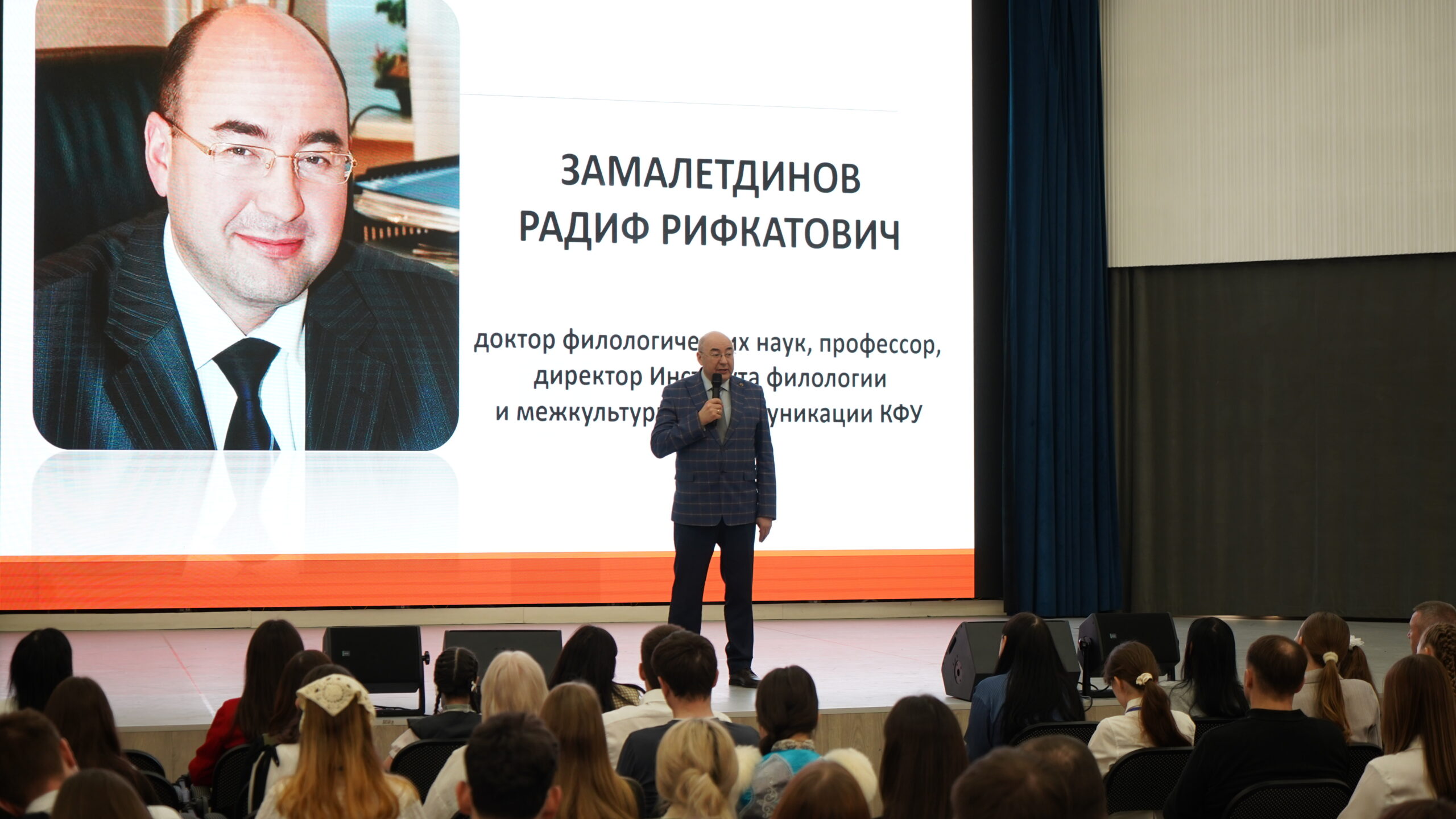 До начала работы секций в актовом зале ИФМК КФУ дан общий старт. Участников Конкурса поприветствовал директор ИФМК КФУ, доктор филологических наук, профессор Радиф Замалетдинов, который отметил, что