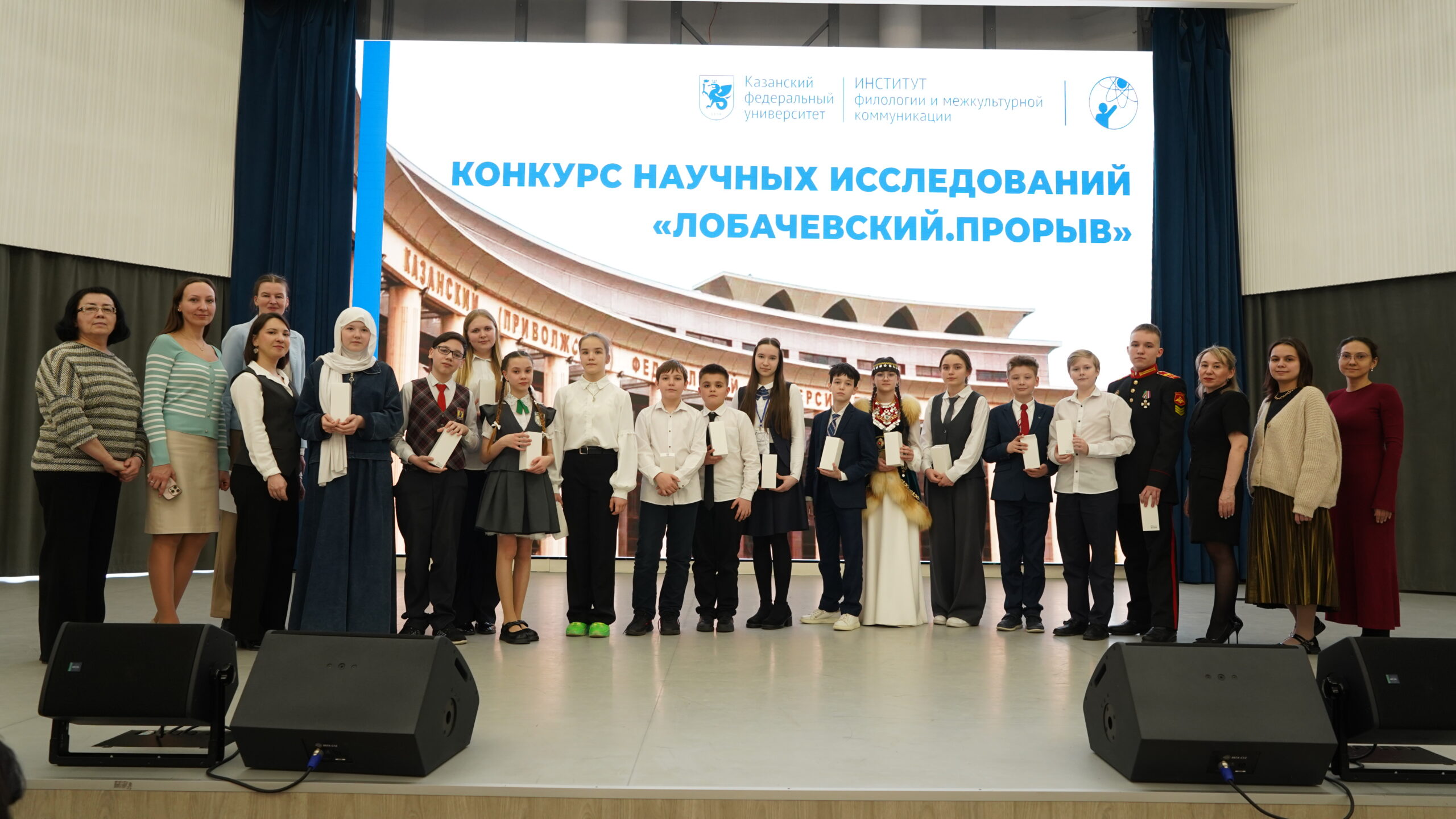 28 марта 2026 года научные исследования учащихся 4-11 классов были заслушаны на секциях в Институте филологии и межкультурной коммуникации КФУ. В весенние каникулы в Казанском федеральном университете традиционно проводится заключительный этап научной конференции имени Николая Ивановича Лобачевского для учащихся 4-11 классов. В этом году с учетом меняющихся трендов, в том числе среди целевой аудитории, был проведен ребрендинг, результатом которого название конференции преобразовалось в Конкурс научных исследований «Лобачевский. Прорыв».