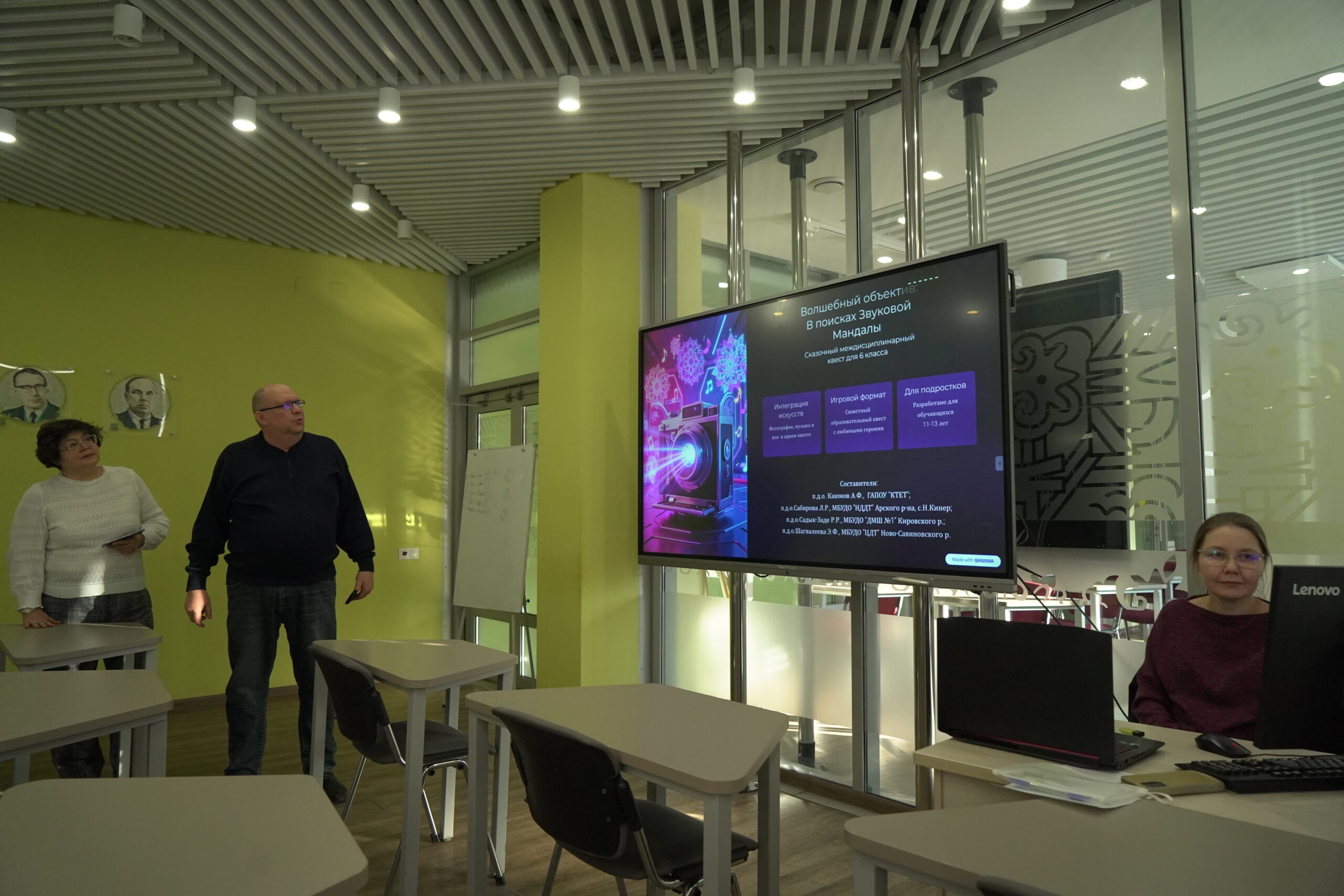 Проектная группа 3 (Каюмов А.Ф., Садык-Заде Р.Р., Шагвалеева Э.Ф.) презентовала авторский междисциплинарный квест «Волшебный объектив. В поисках звуковой мандалы» — яркий пример геймификации в образовании. Интеграция фотографии, музыки и изобразительного искусства нашла преломление в путешествии по образовательным станциям, где дети сначала постигают новый материал, а затем, применяют полученные знания в творческих заданиях.