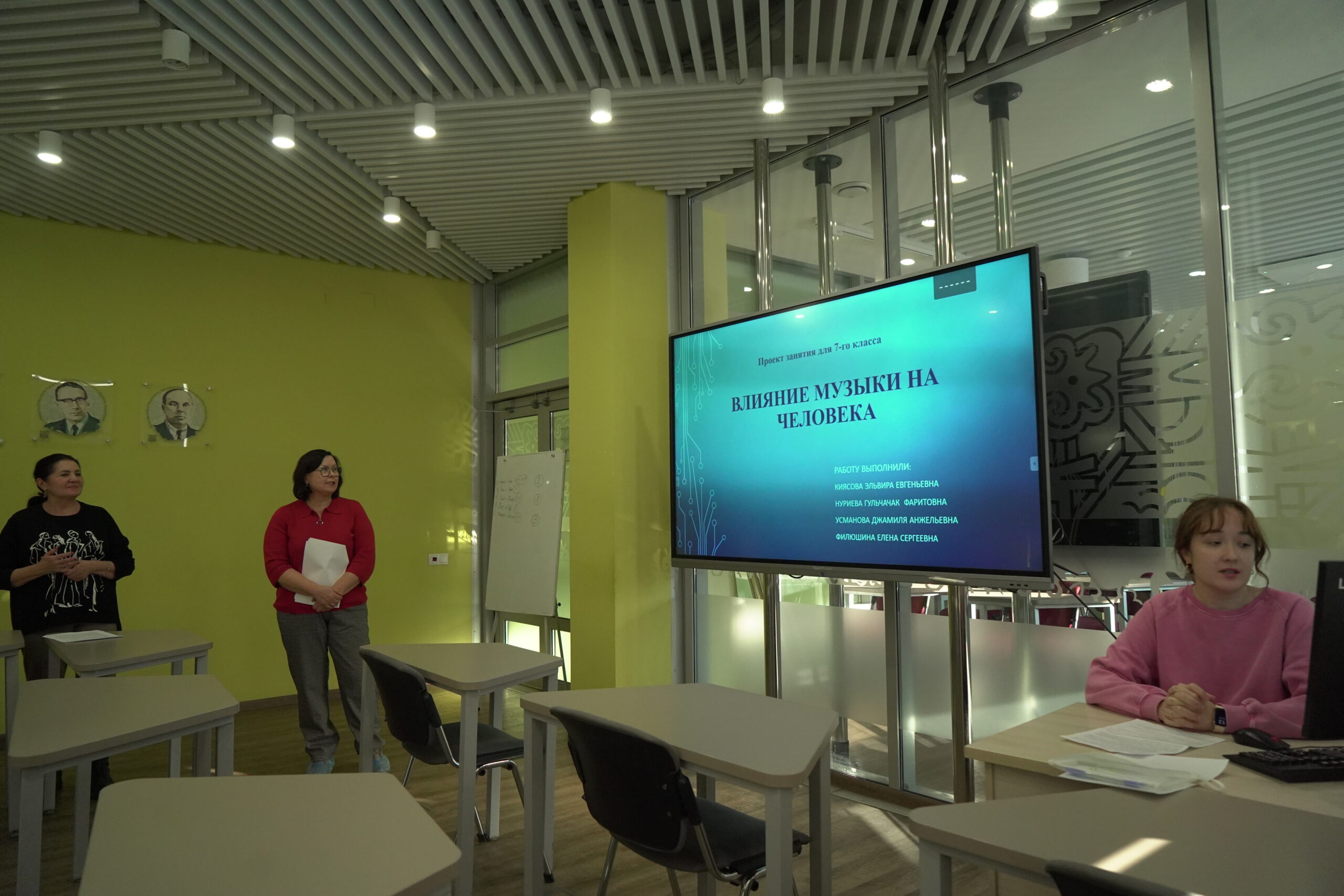 Проектная группа 4 (Киясова Э.Е., Усманова Д.А., Филюшина Е.С.) акцентировала свое внимание на теме «Влияние музыки на человека» для учащихся 7 класса, избрав форматом урок музыки. Проект, направлен на развитие эмоционального интеллекта и самопознания обучающихся-подростков через музыку. Педагогами-новаторами был предложен терапевтический ракурс, который позволит фокусировать внимание обучающихся на «полезности» музыкального искусства для понимания и регуляции собственного эмоционально-психологического состояния.