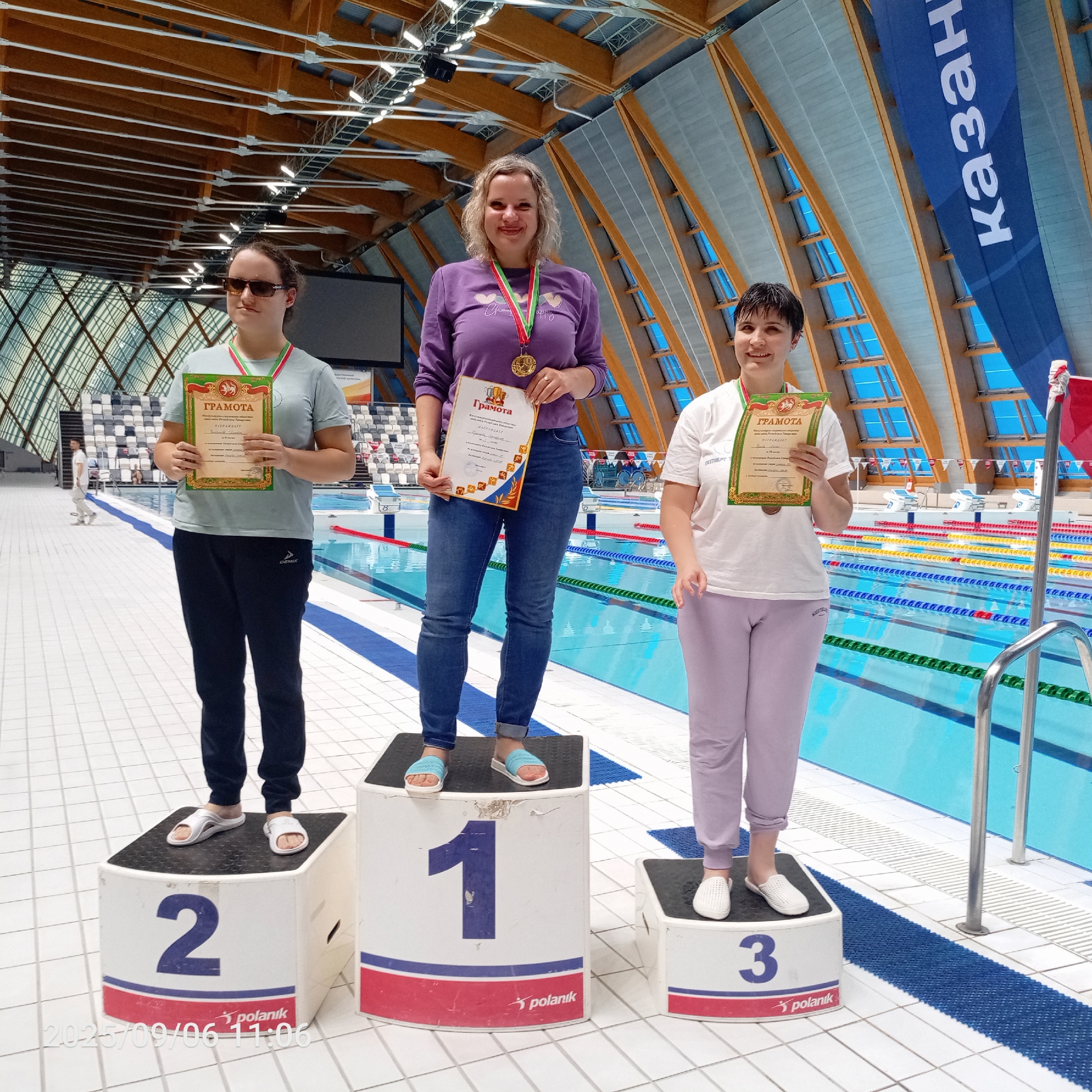 5 сентября Лейсан Гареева приняла участие в Чемпионате РТ по плаванию среди слепых, где на дистанциях 50 м и 100 м на спине заняла 3 и 1 место соответственно.