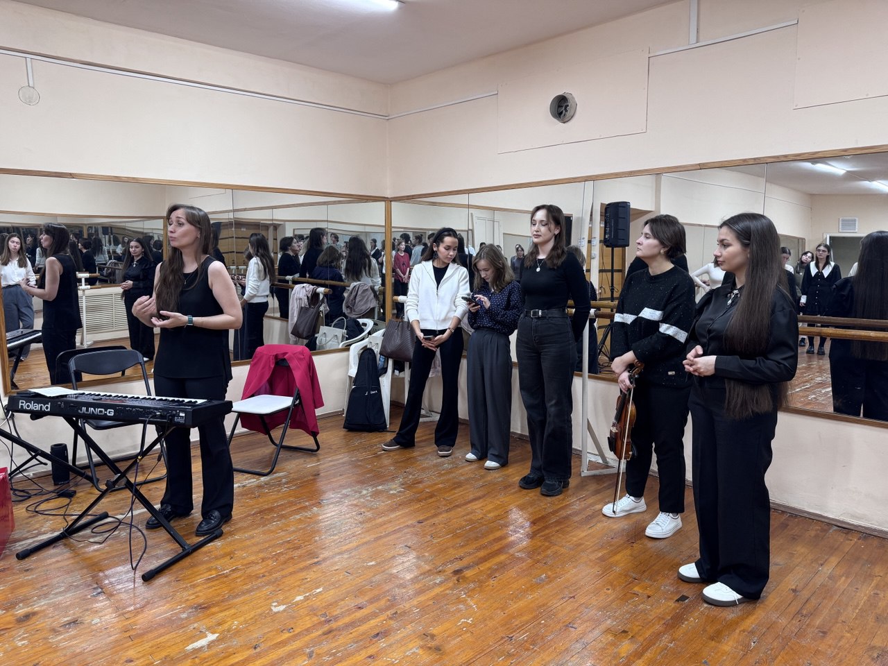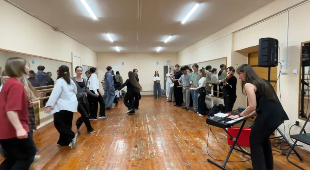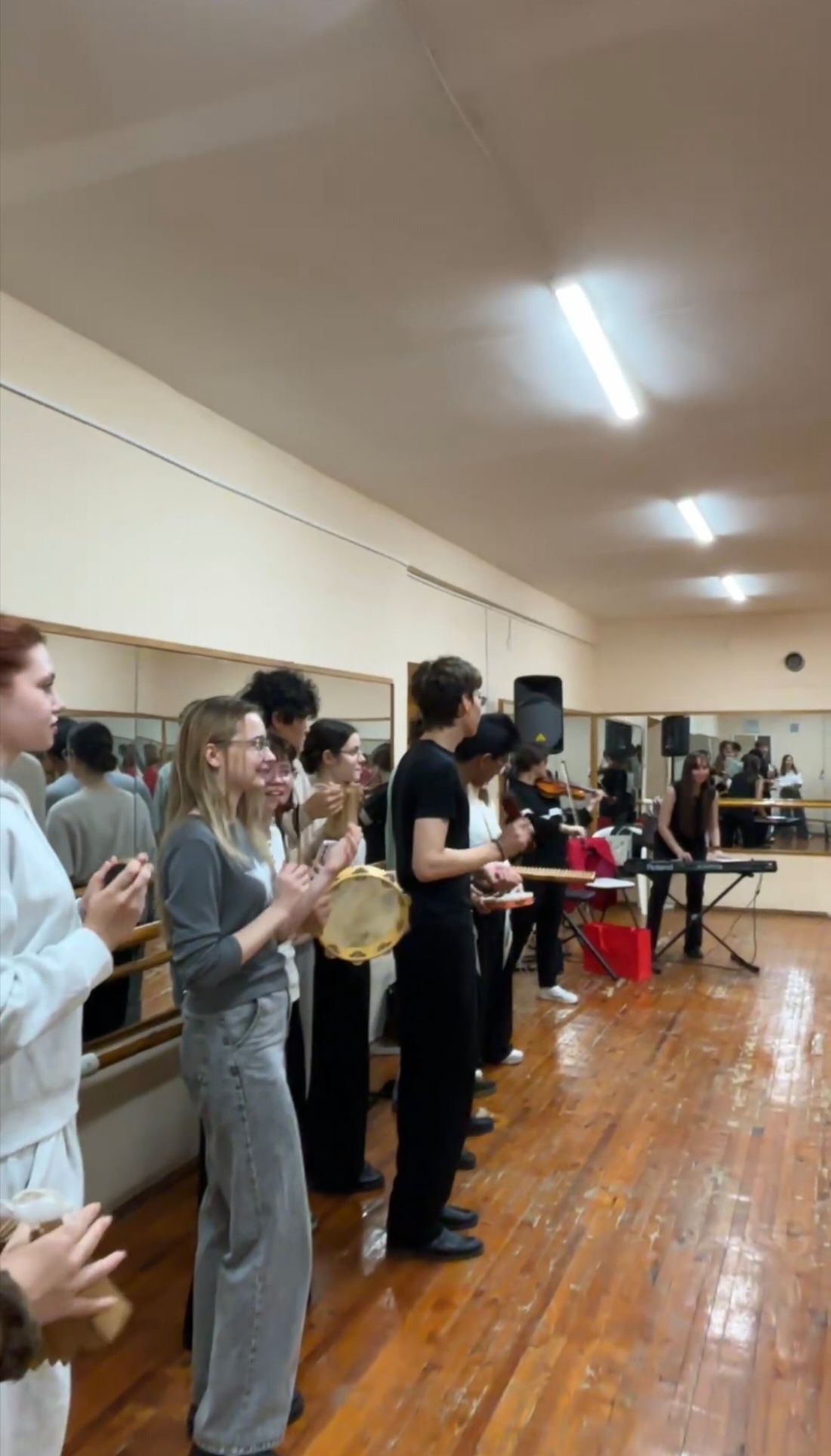 Фольклорный вокально-инструментальный ансамбль «Бәйрәм» не остался в стороне. Для первокурсников разных направлений они провели арт-интерактив – выучили веселую татарскую мелодию, сыграли на шумовых инструментах, освоили элементы танцевальных движений. Таким образом, за небольшой промежуток времени студенты первого курса смогли поставить целый номер, попробовав себя в роли участников творческого коллектива.