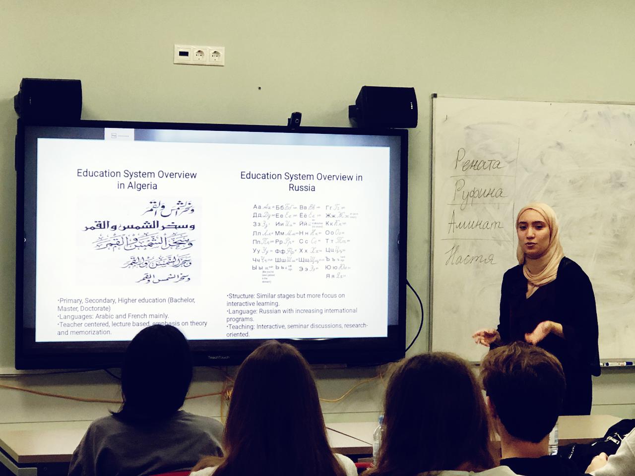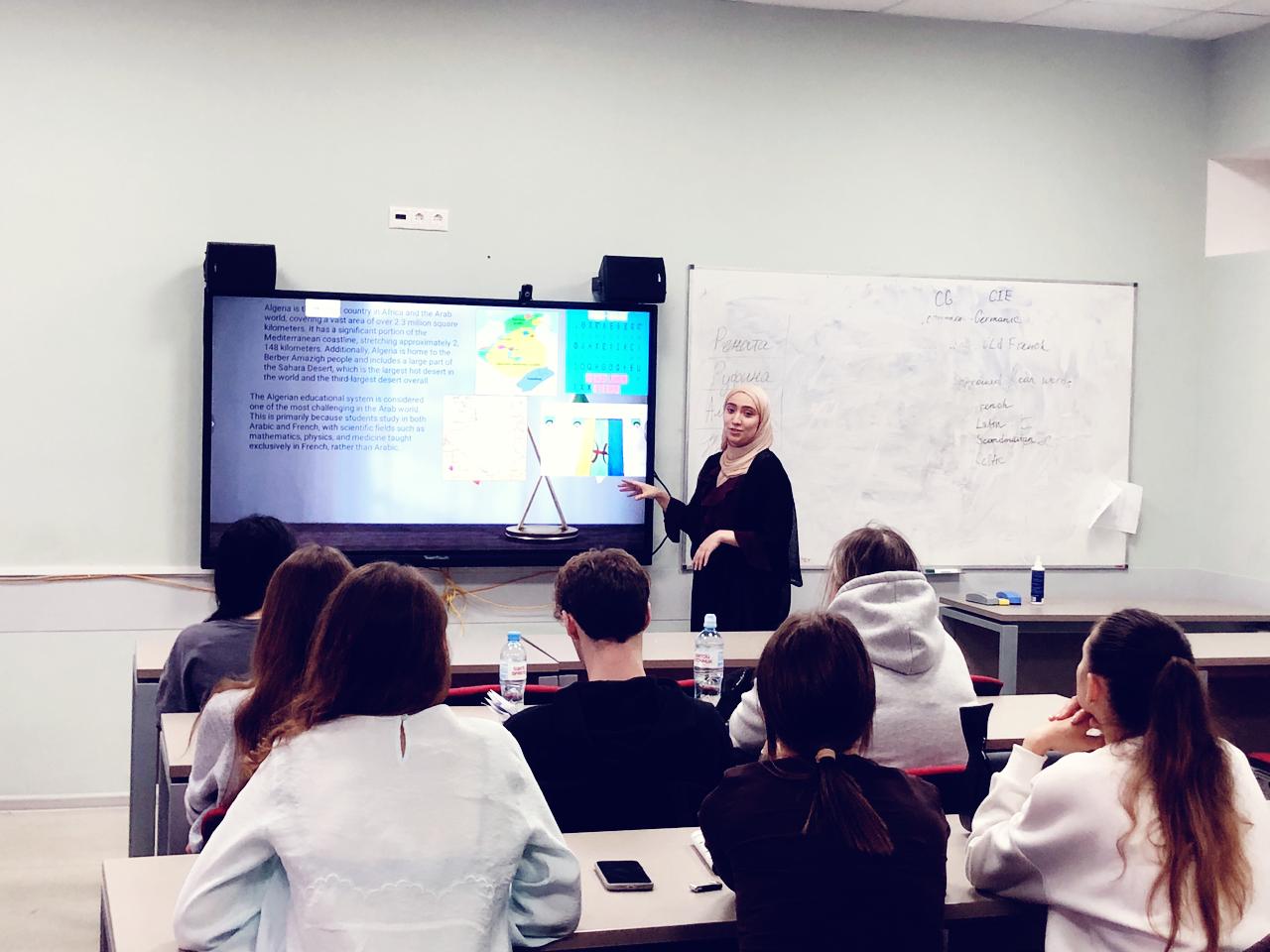 В уютной атмосфере заседания научного кружка «Lingua Oriens» на прошлой неделе царил настоящий дух международного диалога. С докладами выступили аспиранты второго года обучения, чьи научные интересы буквально соединили три континента: Дин Сиюй (Китай) и Хаддад Селсабил (Алжир). Темой дискуссии стало сравнение образовательных систем и академических культур их стран с российской реальностью.