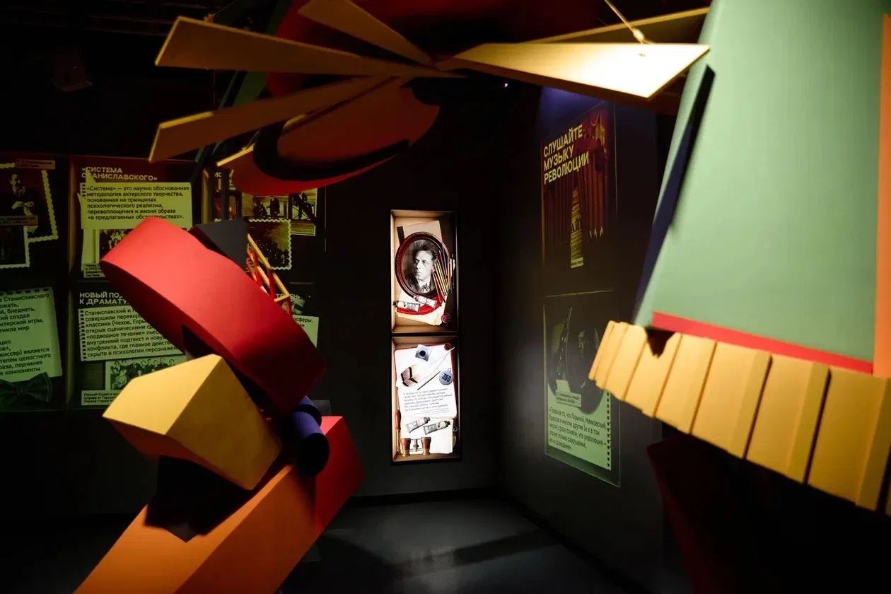 Отдельный раздел посвящен артистам-фронтовикам – Анатолию Папанову, Владимиру Этушу и Зиновию Гердту. В экспозиции также представлена интерактивная игра по системе Мейерхольда и иммерсивный Зеркальный зал с декорациями великих художников.
