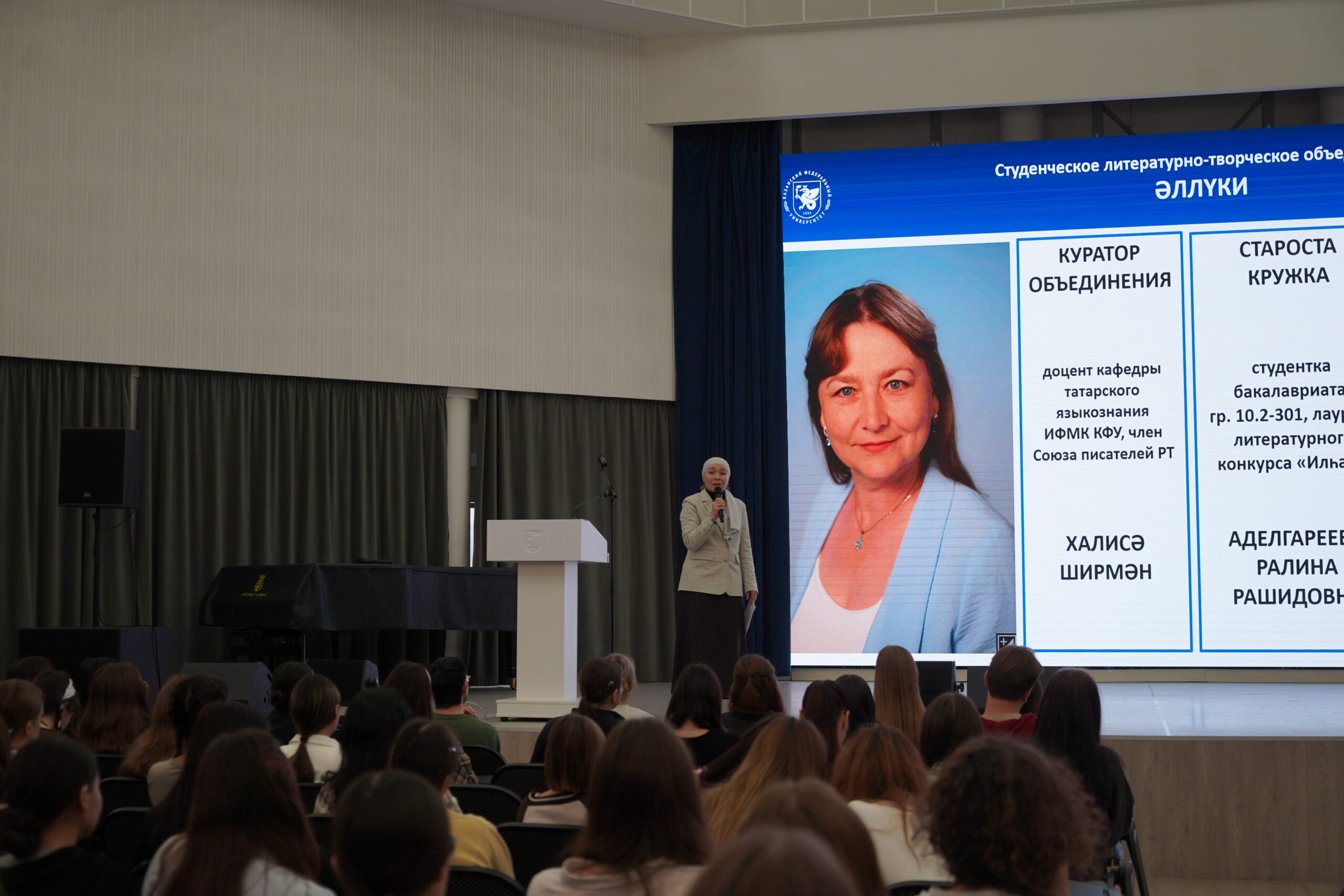 Далее состоялся мастер-класс студенческого литературного творческого объединения «Әллүки», где студенты продемонстрировали как правильно говорить о чувствах через предметный мир, эмоции и детали.