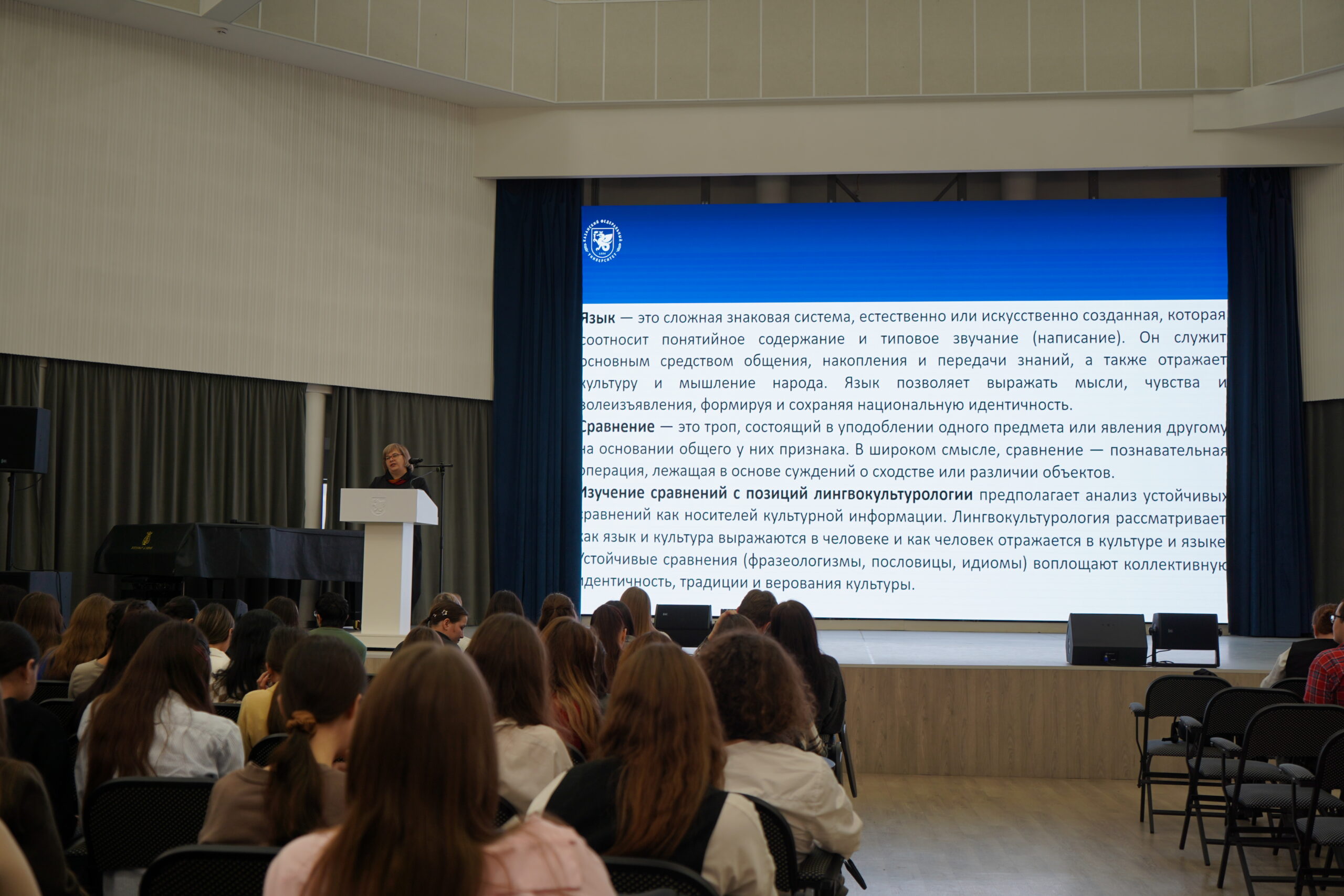 Фестиваль открылся научным докладом на тему Лингвокультурологические аспекты изучения сравнений», которую провела кандидат филологических наук, доцент кафедры общего языкознания и тюркологии Рамзия Марсовна Болгарова. Вместе с Рамзией Марсовной студенты искали ответы на вопросы о связи языка и культуры, расширении и разрушении ментальных границ человека, сдвигах в мышлении и о предпосылках начала научно-исследовательской деятельности студентов.