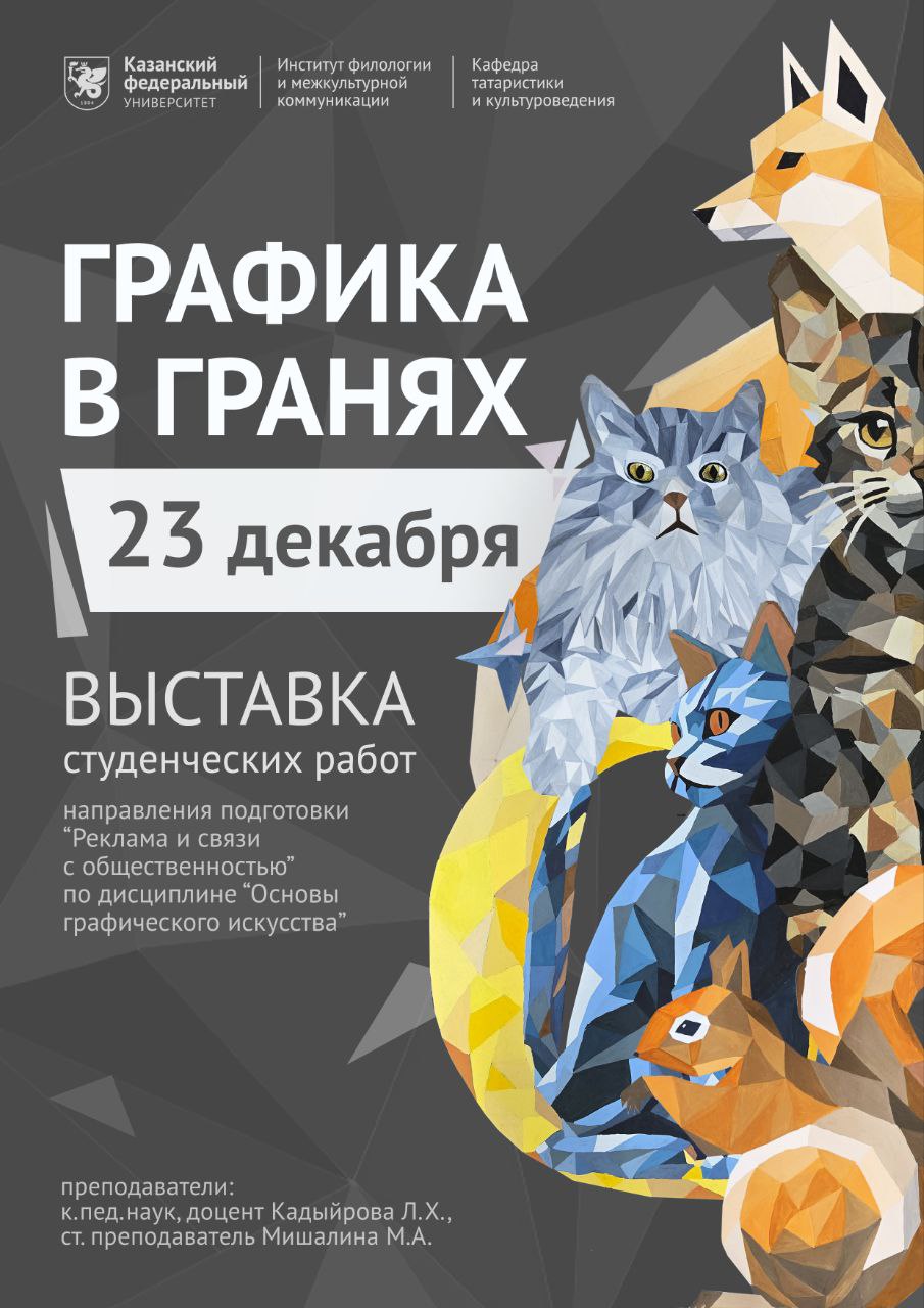 23 декабря 2025 года в 11:40 в выставочной зоне Института филологии и межкультурной коммуникации Казанского федерального университета на 2-ом этаже состоится открытие выставки «Графика в гранях».