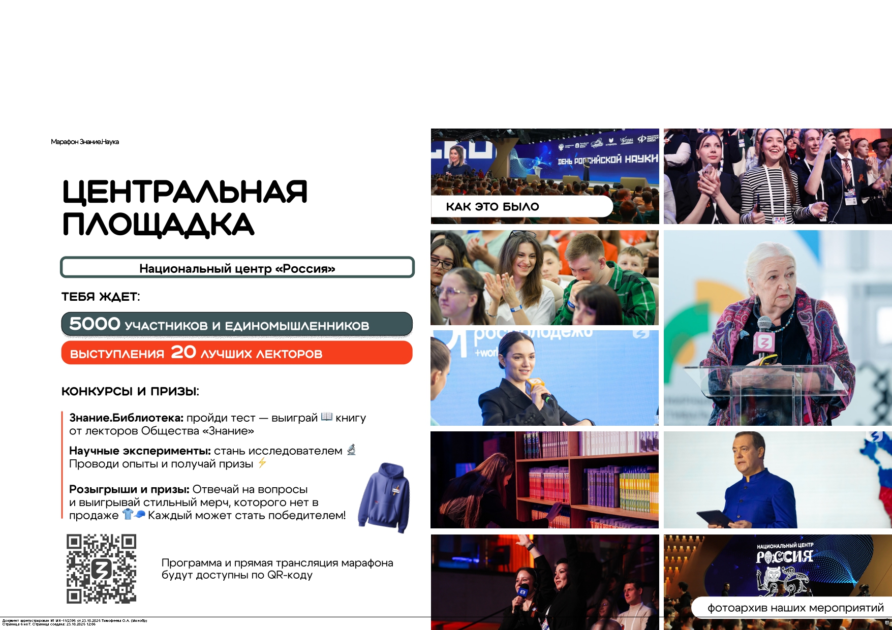 Для зрителей трансляции марафон станет настоящим погружением в мир науки — вы сможете задать вопросы выдающимся спикерам в прямом эфире, принять участие в онлайн-конкурсах с ценными призами и найти единомышленников через интерактивные форматы общения.