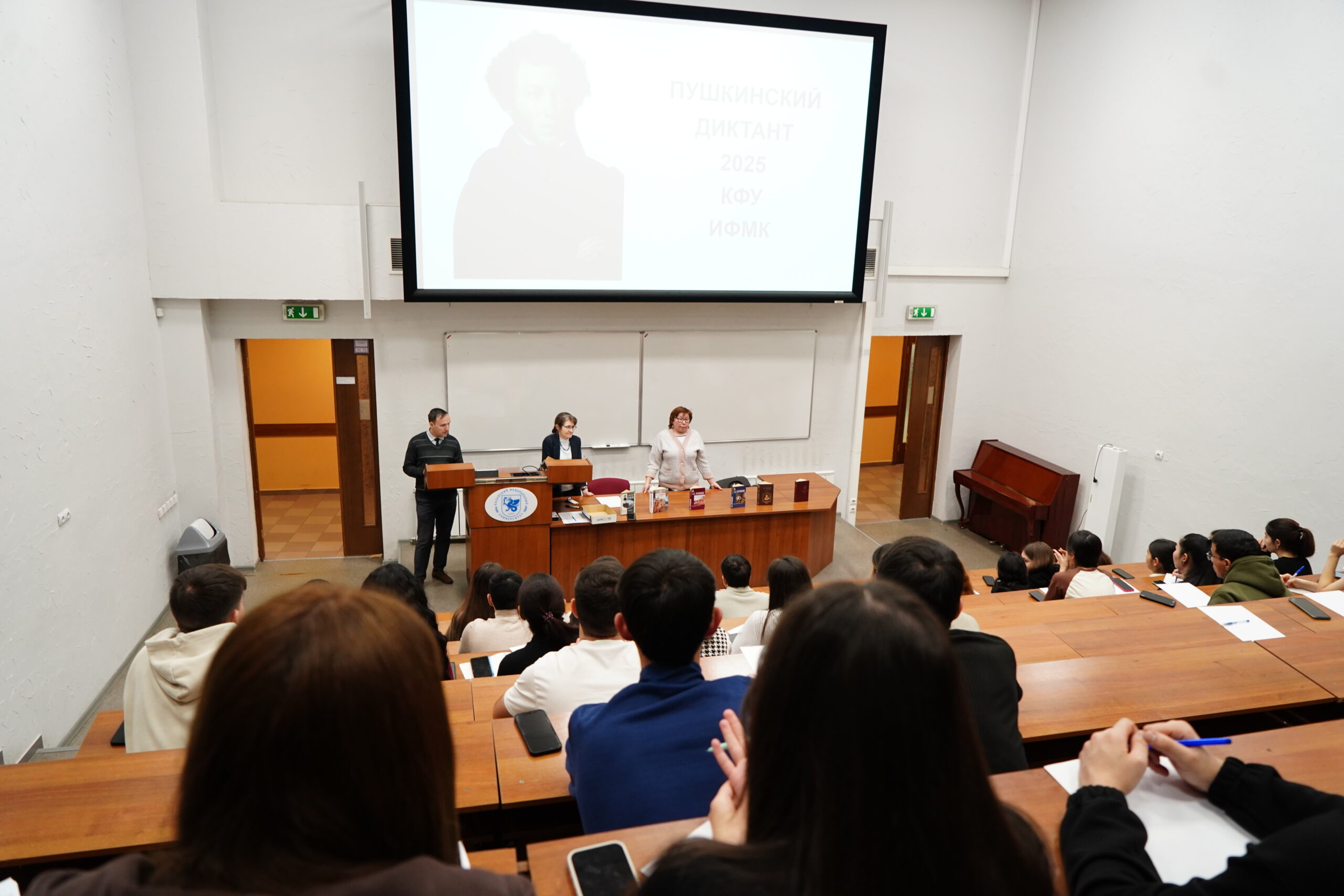 10 ноября 2025 года в большой лекционной аудитории в Институте филологии и межкультурной коммуникации КФУ студенты написали Пушкинский диктант.