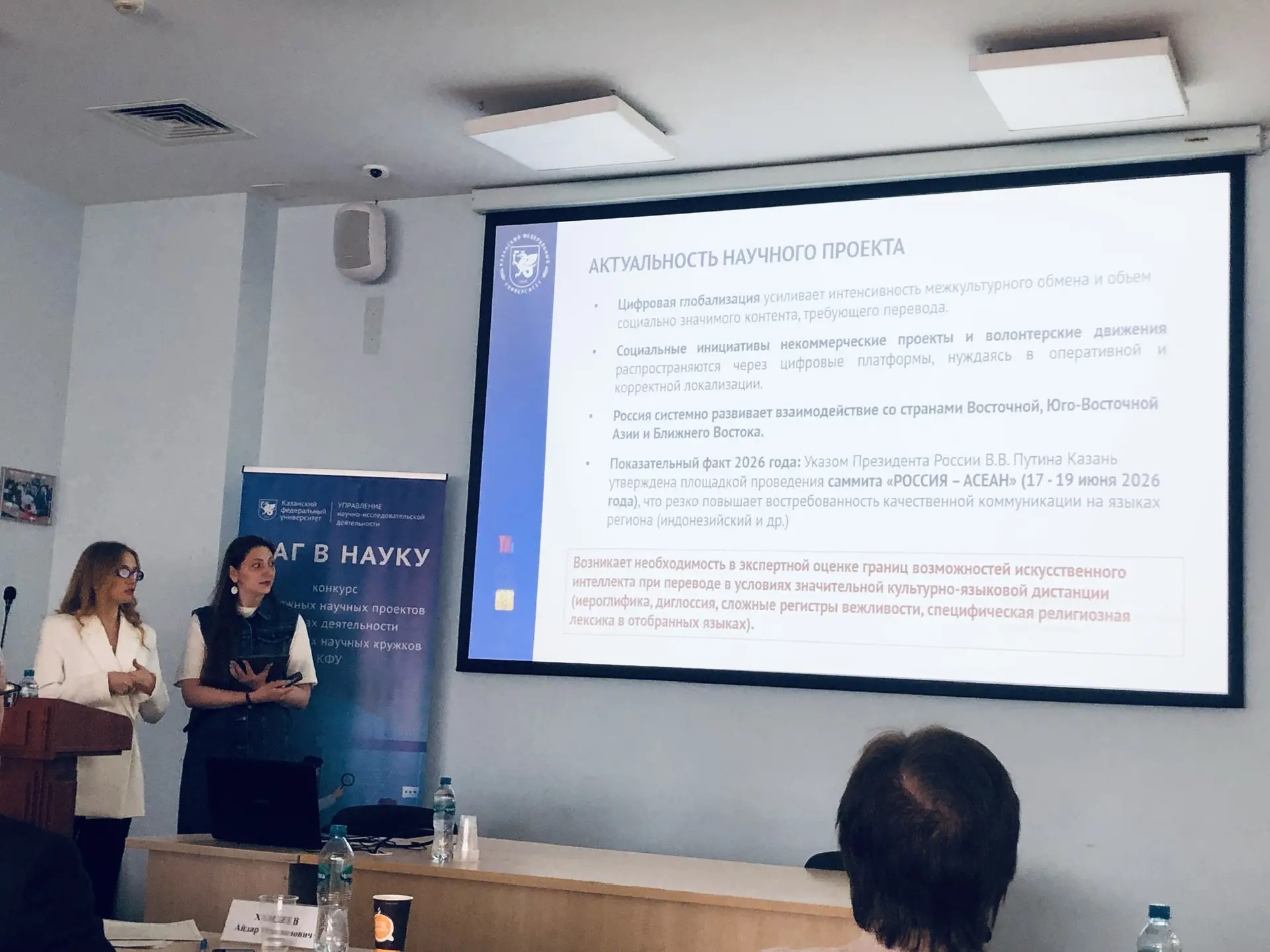 23 апреля 2026 года в Научной библиотеке им. Н.И. Лобачевского состоялся II очный этап конкурса студенческих научных проектов «Шаг в науку». Команды из различных институтов Казанского федерального университета представили результаты своих исследований экспертному жюри. Одним из наиболее содержательных выступлений стала защита проекта СНК «LINGUA ORIENS» (Институт филологии и межкультурной коммуникации). Команда продемонстрировала высокий уровень научной подготовки, междисциплинарный подход и практическую значимость работы.