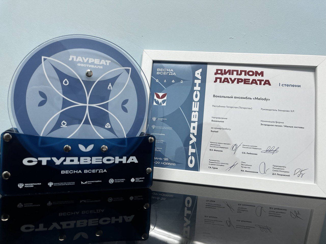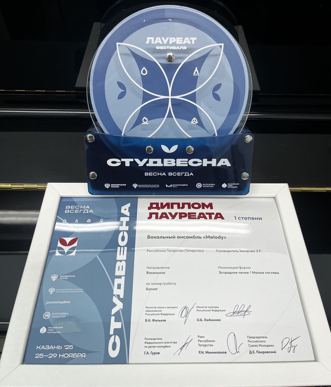 Также коллектив стал участником конкурсного спектакля «Джалиль» и Церемонии закрытия Российской Студенческой весны 2025, где исполнил композицию «Sanset». Ранее «Melody» был удостоен звания лауреата Гран-при Студенческой весны Республики Татарстан 2025 г.