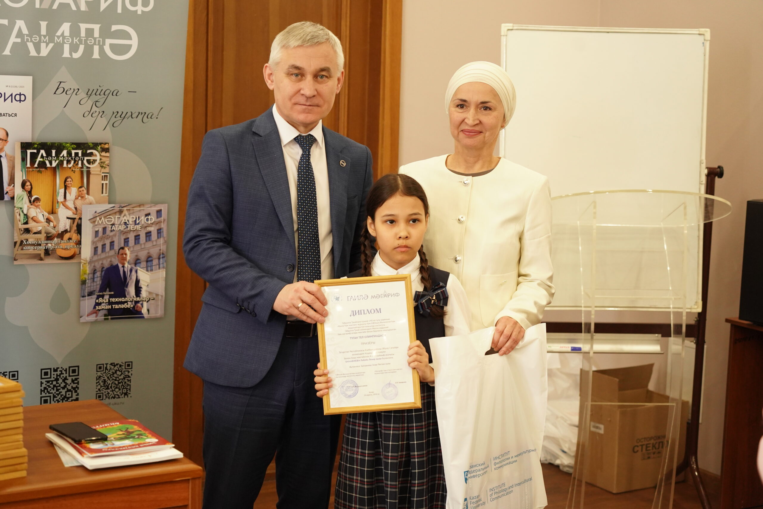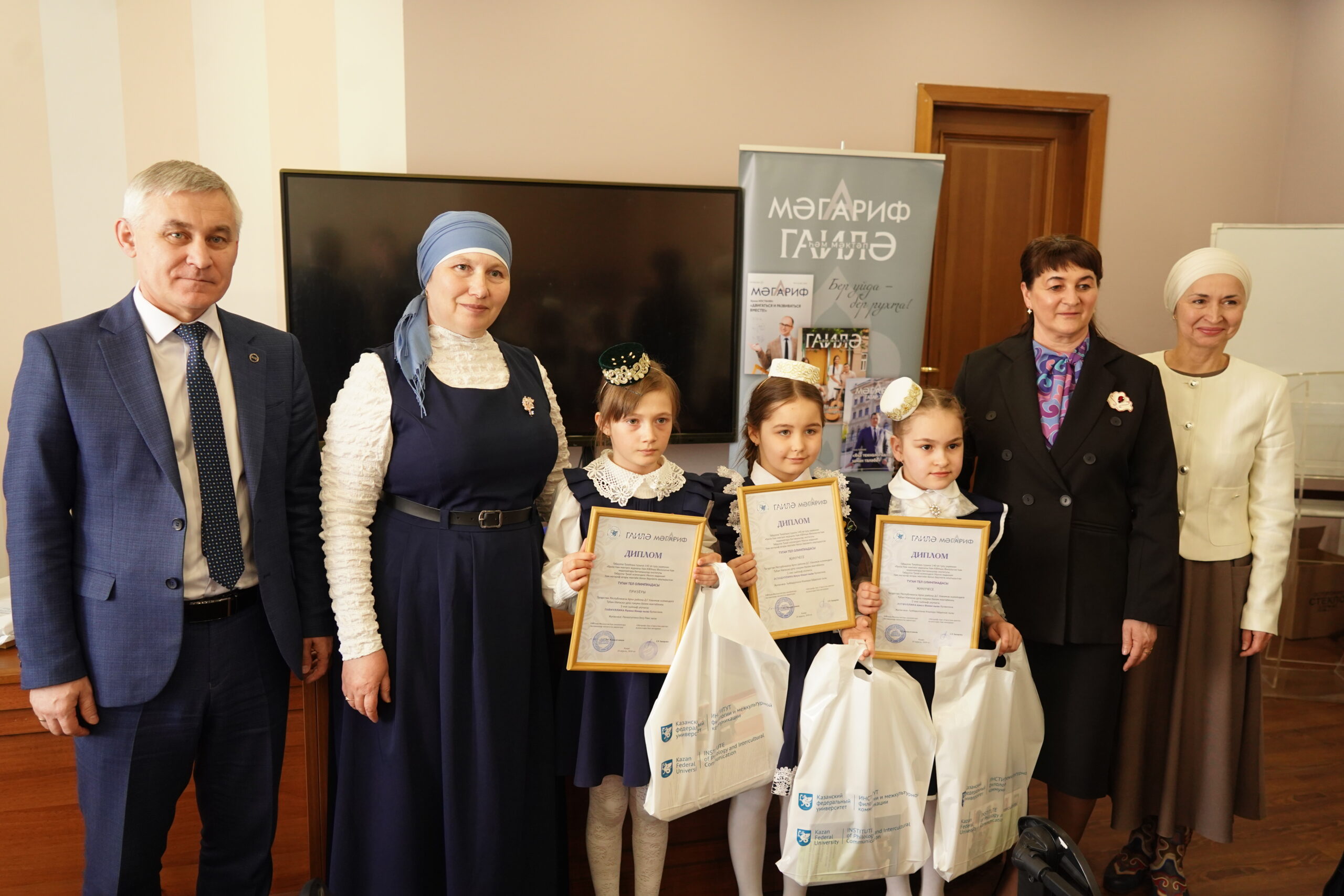 Гөлфия Рәсил кызы Гайнуллина теләкләре, фикерләре белән бүлешеп, «Олимпиада зур әһәмияткә ия, чөнки бу — өчен абитуриентларыбызны беренче сыйныфтан башлап институтыбызга, югары мәктәбебезгә җәлеп итү чарасы. «Гаилә һәм мәктәп», «Мәгариф» журналы оештырып җибәргән «Туган тел» конкурсы уңдырышлы җиргә беректе, укучылар анда бик яратып катнаша»,- дип, җиңүчеләрне ихластан котлады.