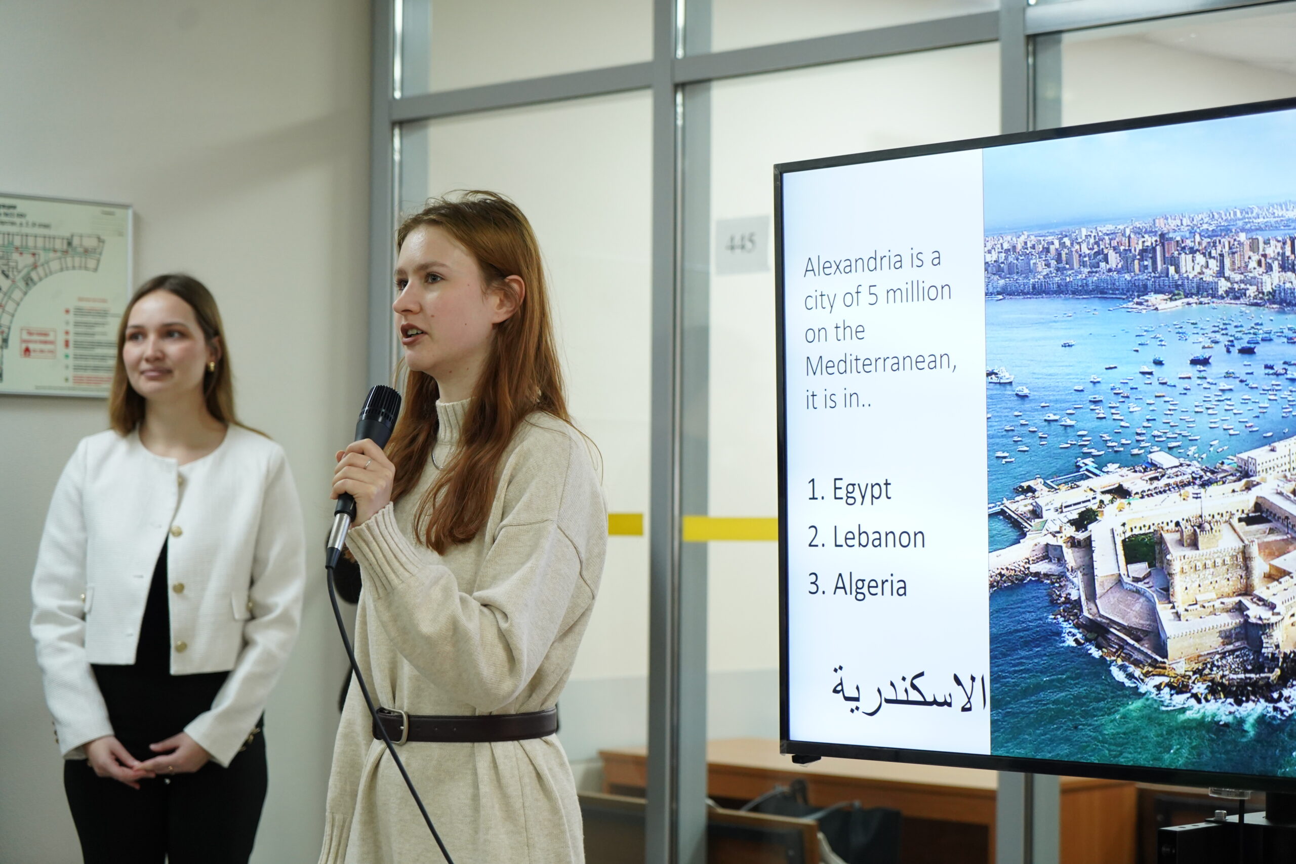 Ассистент кафедры контрастивной лингвистики Фархад Бадур провел для студентов увлекательную интеллектуальную викторину, которая не только вызвала интерес и азарт среди участников, но и стала отличной возможностью проверить и закрепить полученные знания.