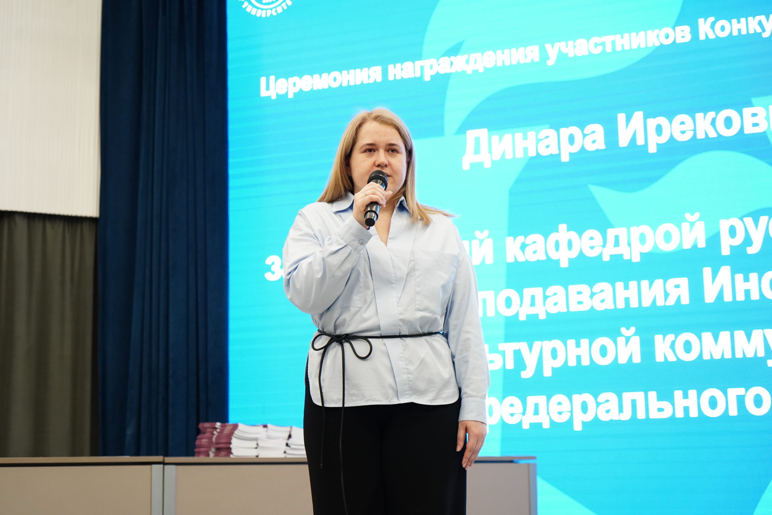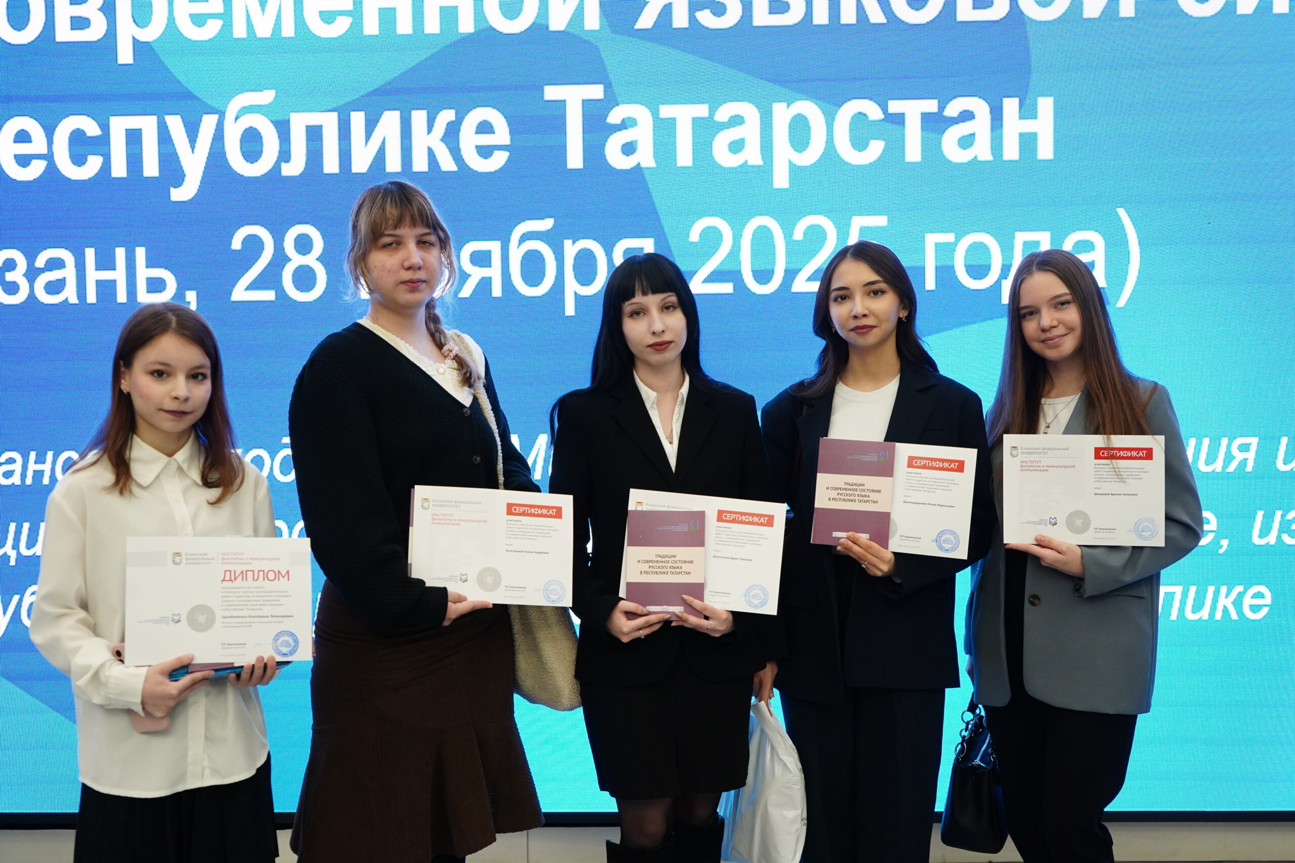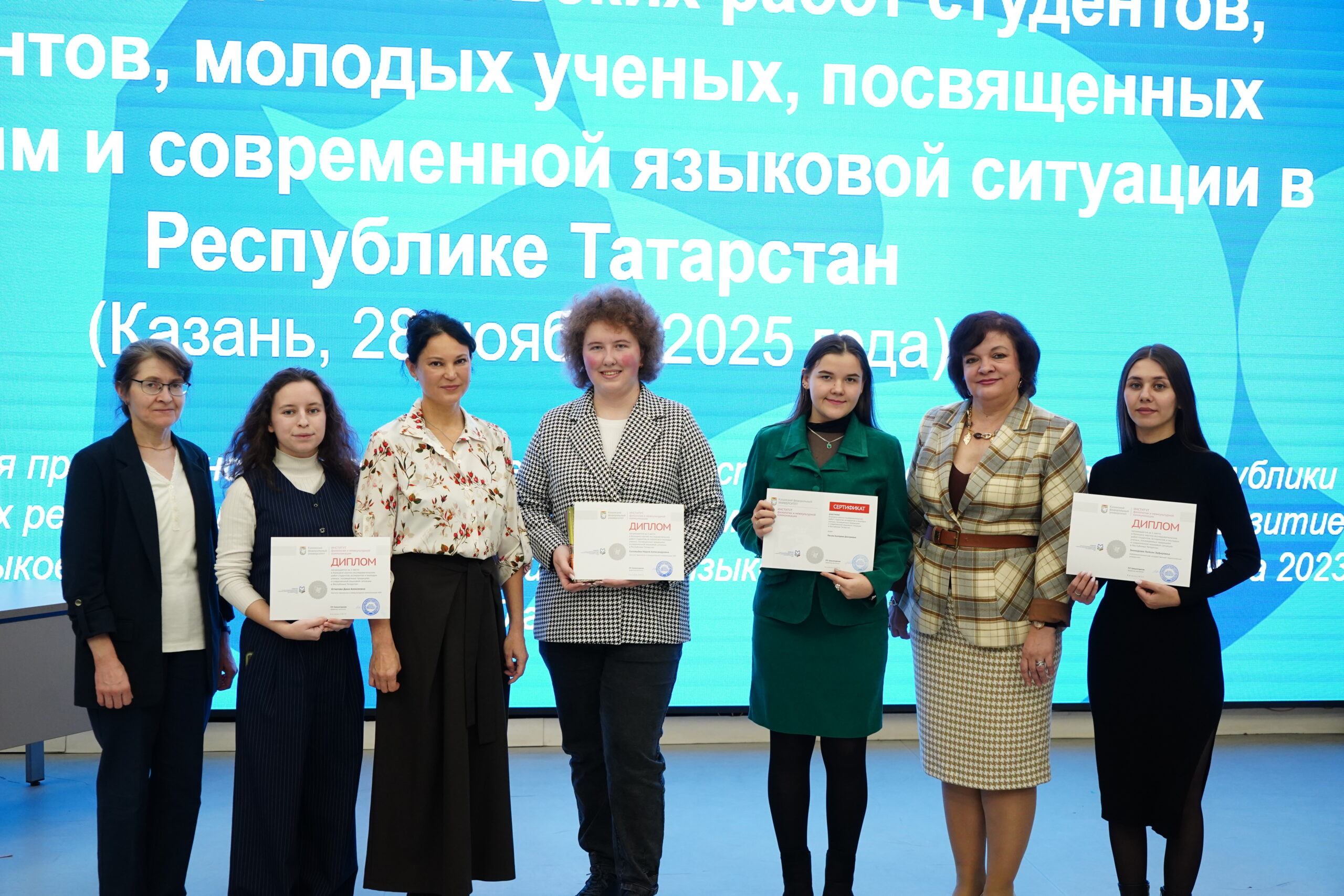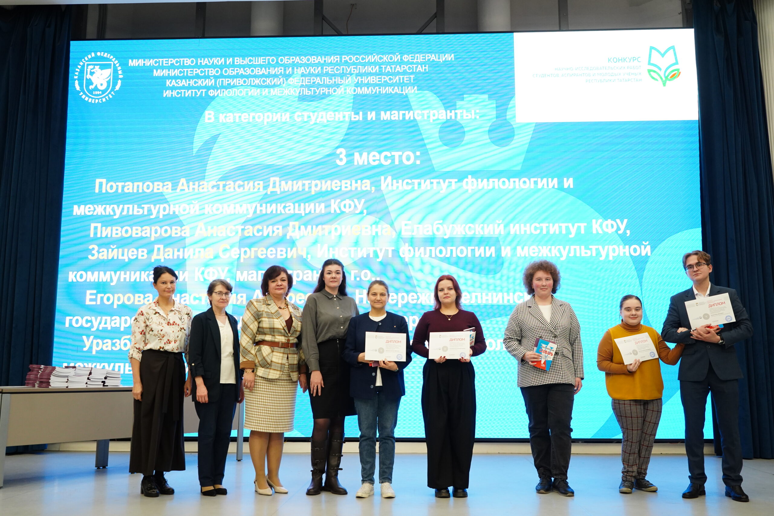 В актовом зале Института филологии и межкультурной коммуникации КФУ состоялась Торжественная церемония награждения дипломами и памятными призами победителей Конкурса научно-исследовательских работ студентов, аспирантов и молодых ученых, посвященных традициям и современной языковой ситуации в Республике Татарстан, в рамках реализации мероприятий Государственной программы «Сохранение, изучение и развитие государственных языков Республики Татарстан и других языков в Республике Татарстан на 2023-2030 годы»!
