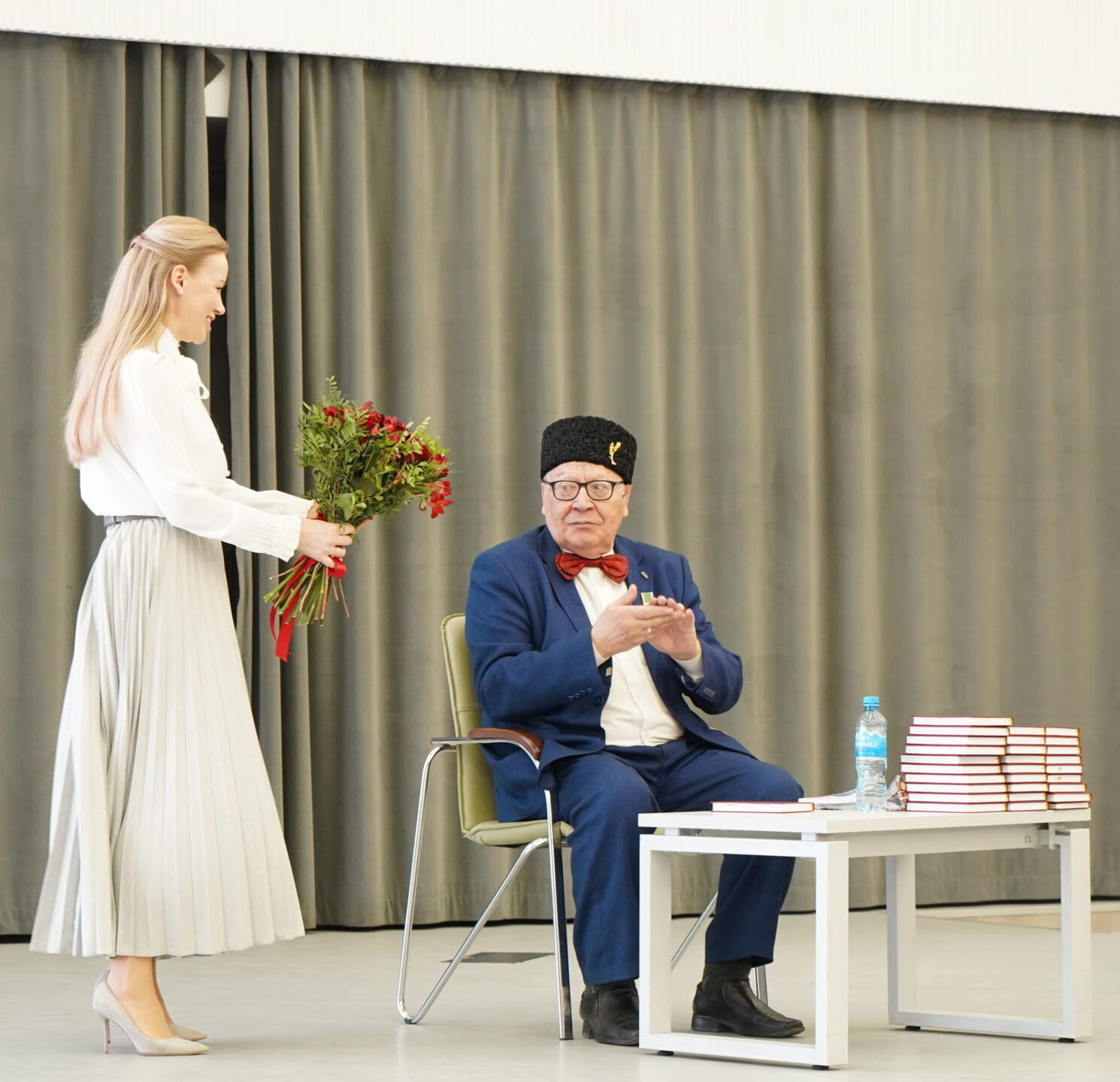 Студенты и гости университета исполнили многочисленные стихи и песни на стихи юбиляра, а аспиранты из Казахстана представили переводы произведений казахского поэта Магжана Жумабаева, выполненные Радифом Гаташем.