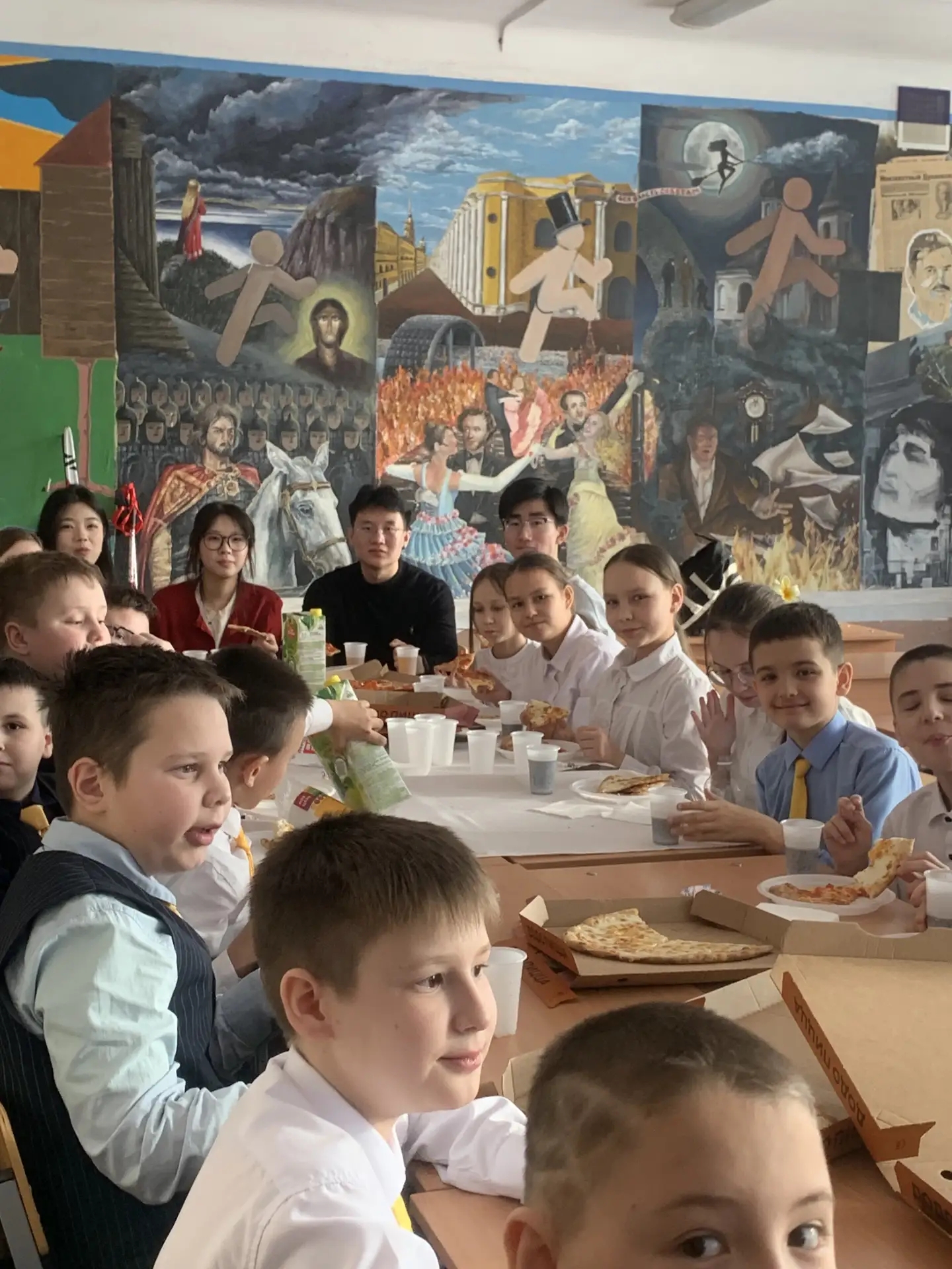 Заключительная часть встречи прошла в непринужденной атмосфере веселья. За общим столом дети наслаждались вкусной пиццей и соками. Атмосфера праздника позволила участникам расслабиться и почувствовать себя частью большой международной семьи.