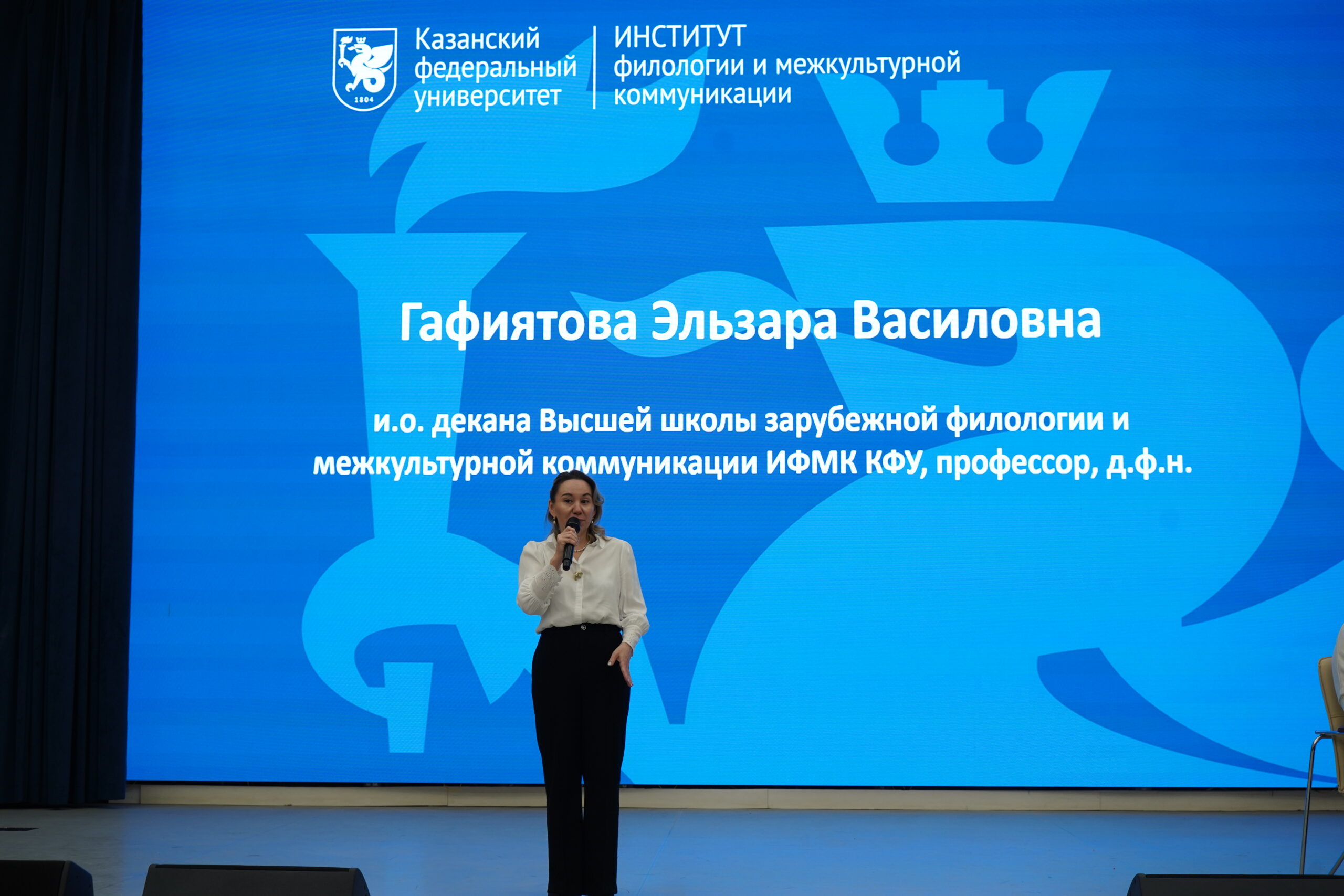 К участникам конференции с приветственным словом обратилась и.о. декана ВШЗФМК ИФМК КФУ, профессор, доктор филологических наук Эльзара Гафиятова: «Приветствуем вас в Институте филологии и межкультурной коммуникации, состоящем из трех Высших школ. Конференция в наших стенах проходит уже в 23-й раз. Мы гордимся тем, что являемся продолжателями этой традиции. Организаторами конференции выступили кафедра зарубежной литературы и кафедра русской литературы и методики преподавания. Рады всех вас видеть. Желаем удачи!».