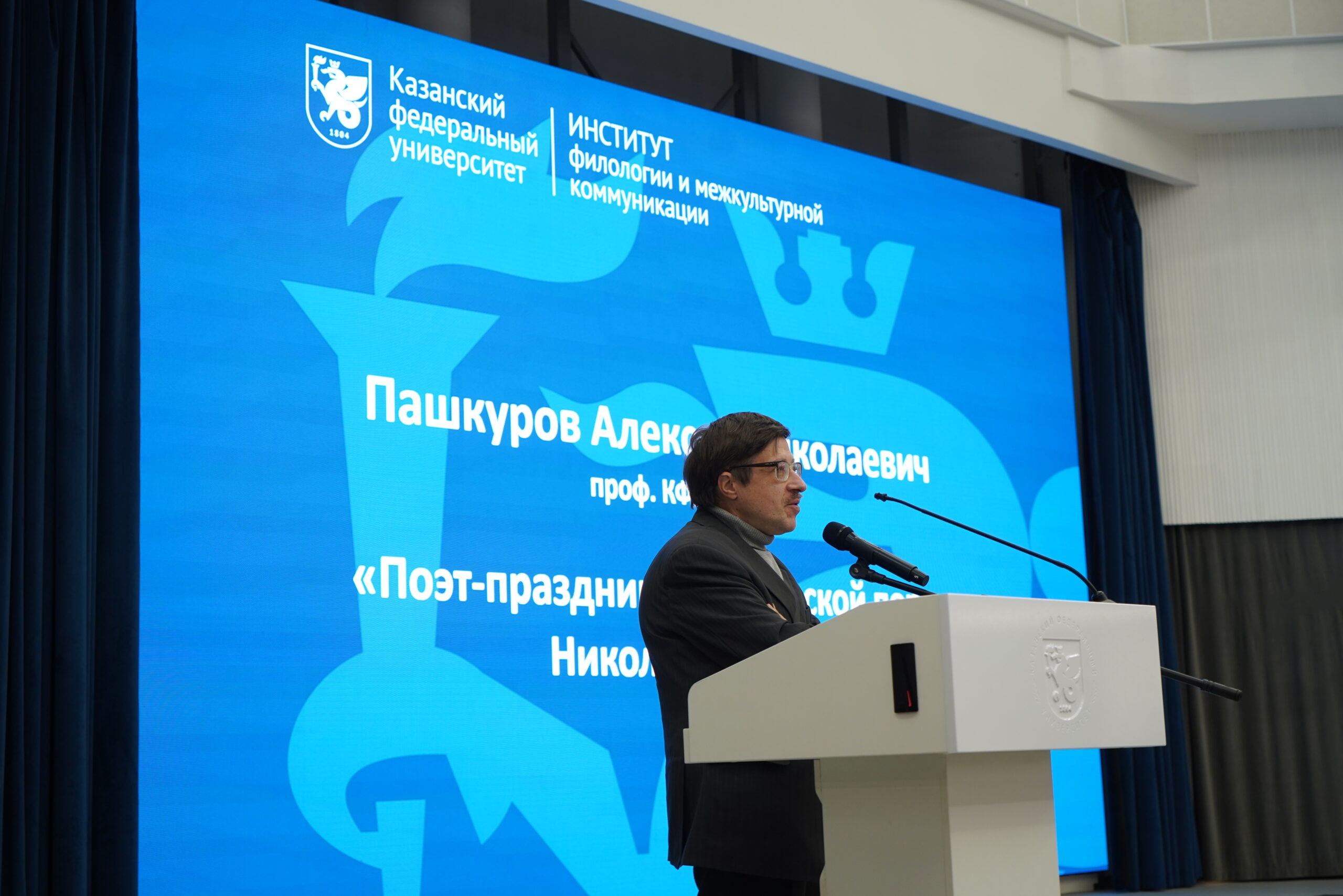 На пленарном заседании с докладом по теме ««Поэт-праздник» пушкинской поры: Николай Языков» выступил профессор КФУ, доктор филологических наук Алексей Пашкуров, рассказав о русском поэте эпохи романтизма, одном из ярких представителей золотого века русской поэзии. В рамках темы «Диалог с русской классикой в творчестве современных русских и татарских писателей» прочитала и проанализировала стихотворения известных поэтов профессор ИФМК КФУ Альфия Галимуллина. Познакомила с перспективами зарубежной филологии в современном мире и актуальными мифами доцент КФУ, кандидат филологических наук Арина Шевченко.
