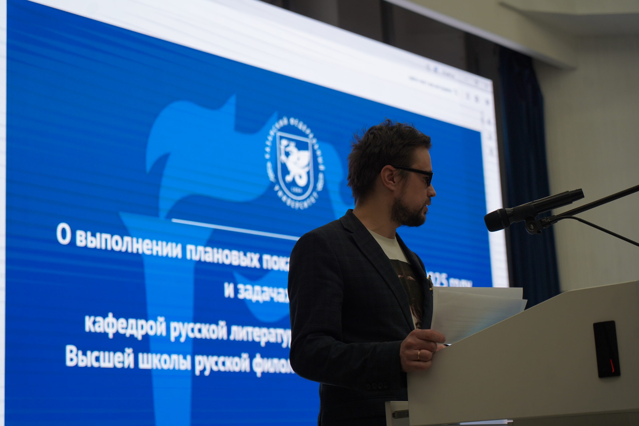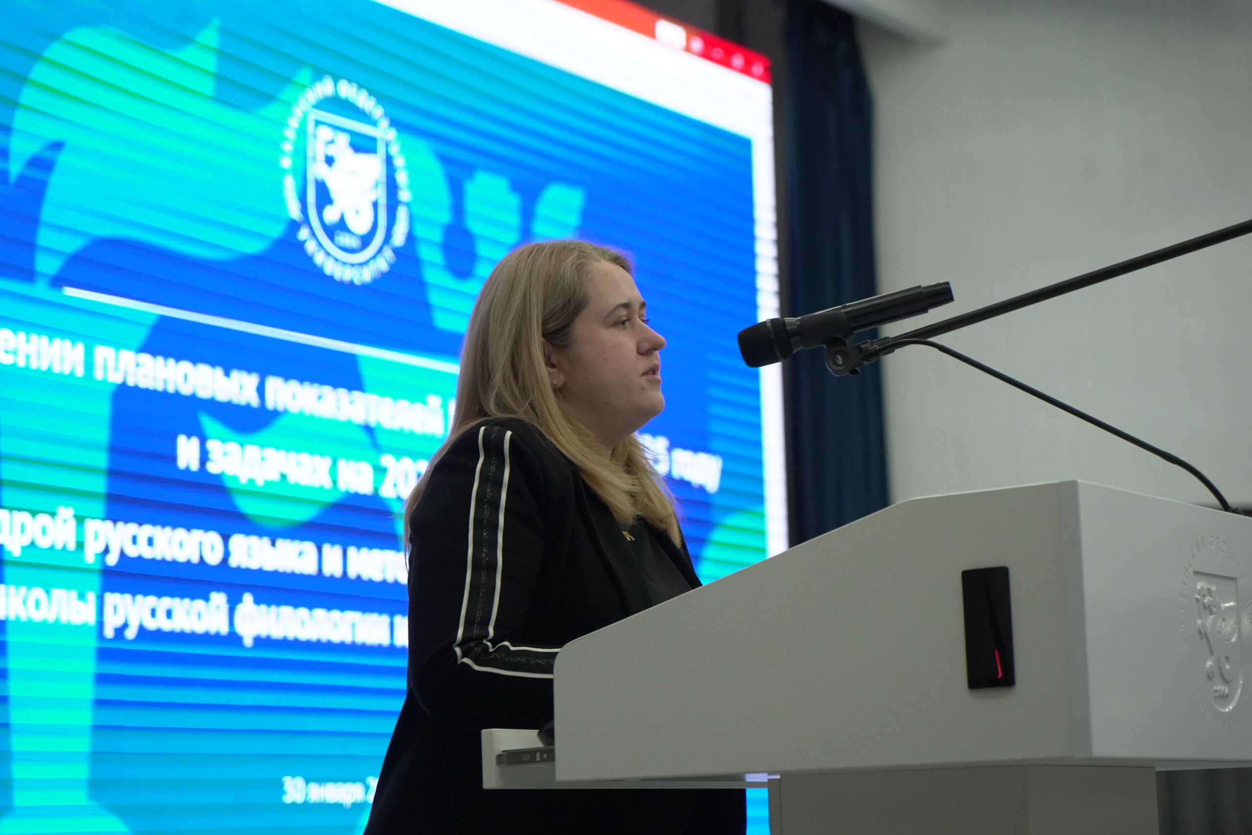 Презентовали отчеты о проделанной работе: заведующая кафедрой русского языка и методики его преподавания Динара Рахимова, заведующая кафедрой прикладной и экспериментальной лингвистики Елена Горобец, заведующий кафедрой русской литературы и методики ее преподавания Антон Афанасьев и доцент кафедры русского языка как иностранного Аида Гайнутдинова.